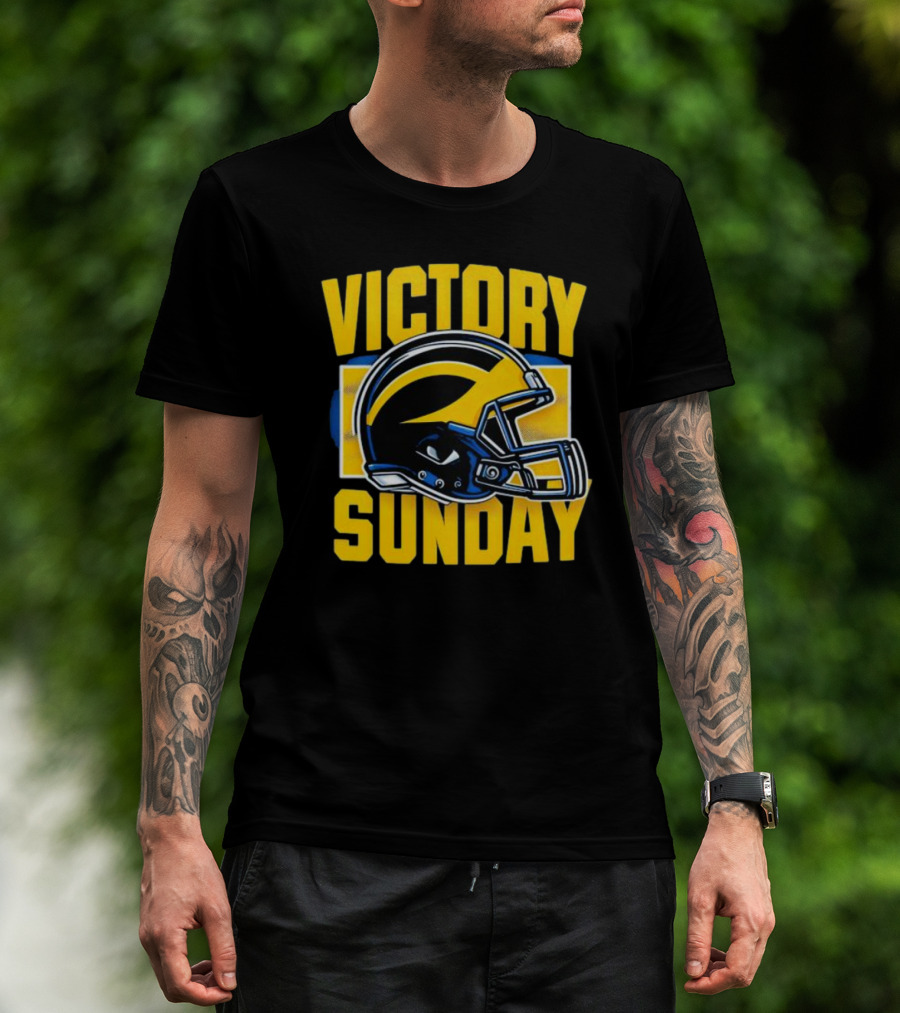 The Victory Sunday Michigan Helmet T-shirt is designed for everyday wear and a consistent fit. Fabric is pre-shrunk ring-spun cotton with durable stitching. See the size chart below for exact measurements.