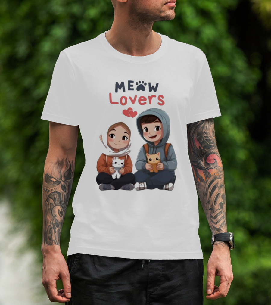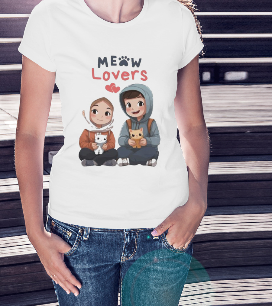 Meow Lovers Cute Boy And Girl With Kittens T-Shirt