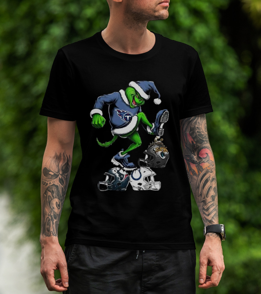 Tennessee Titans Grinch Stomping Jaguars Texans Colts Helmets Christmas T-Shirt
