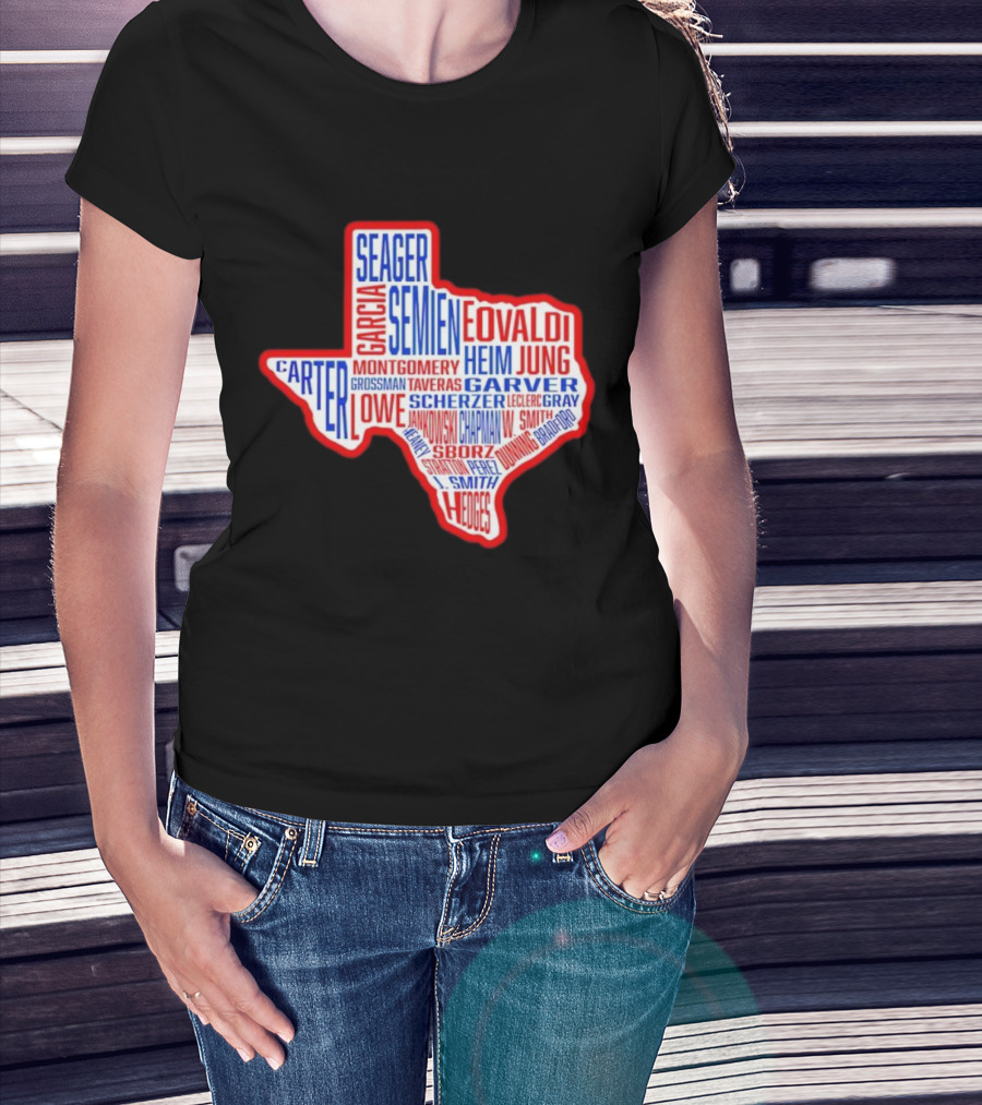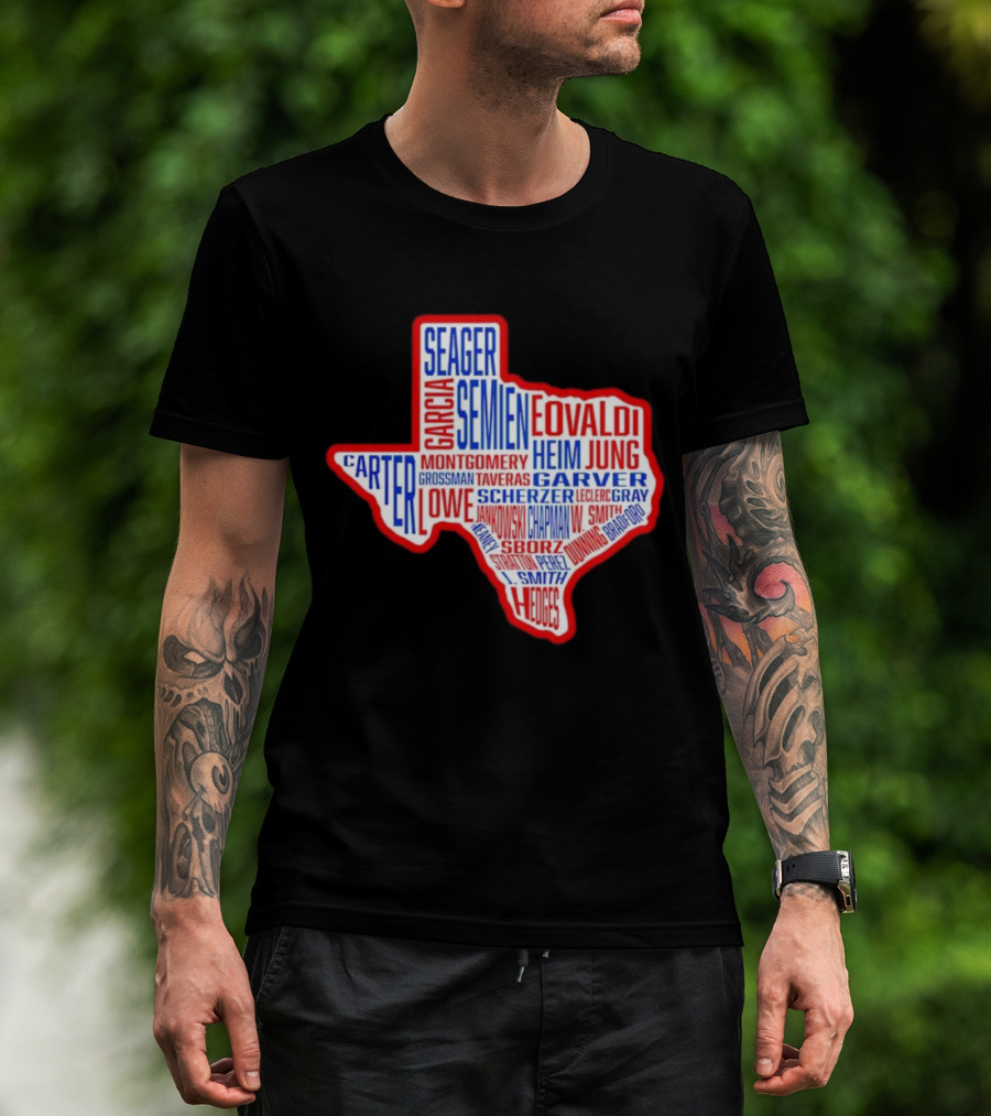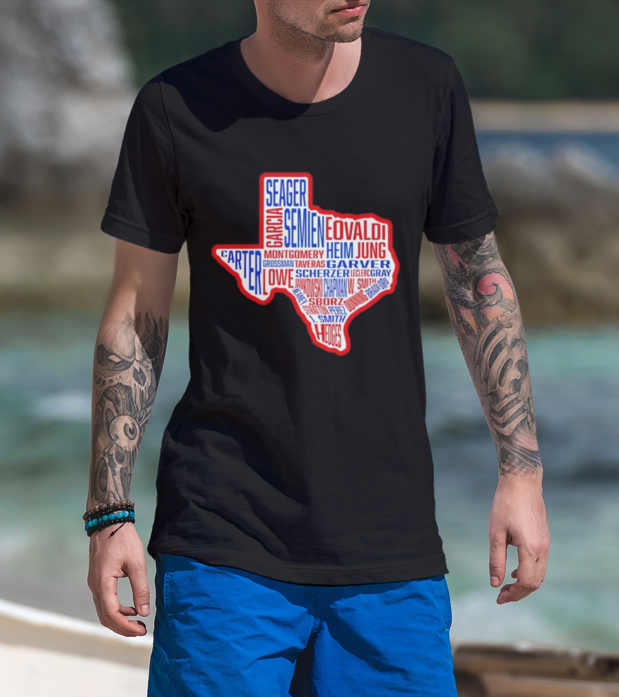 Texas Rangers Champs Seager Semien Garcia Eovaldi Carter Montgomery Heim Jung Garver Lowe Scherzer T-Shirt