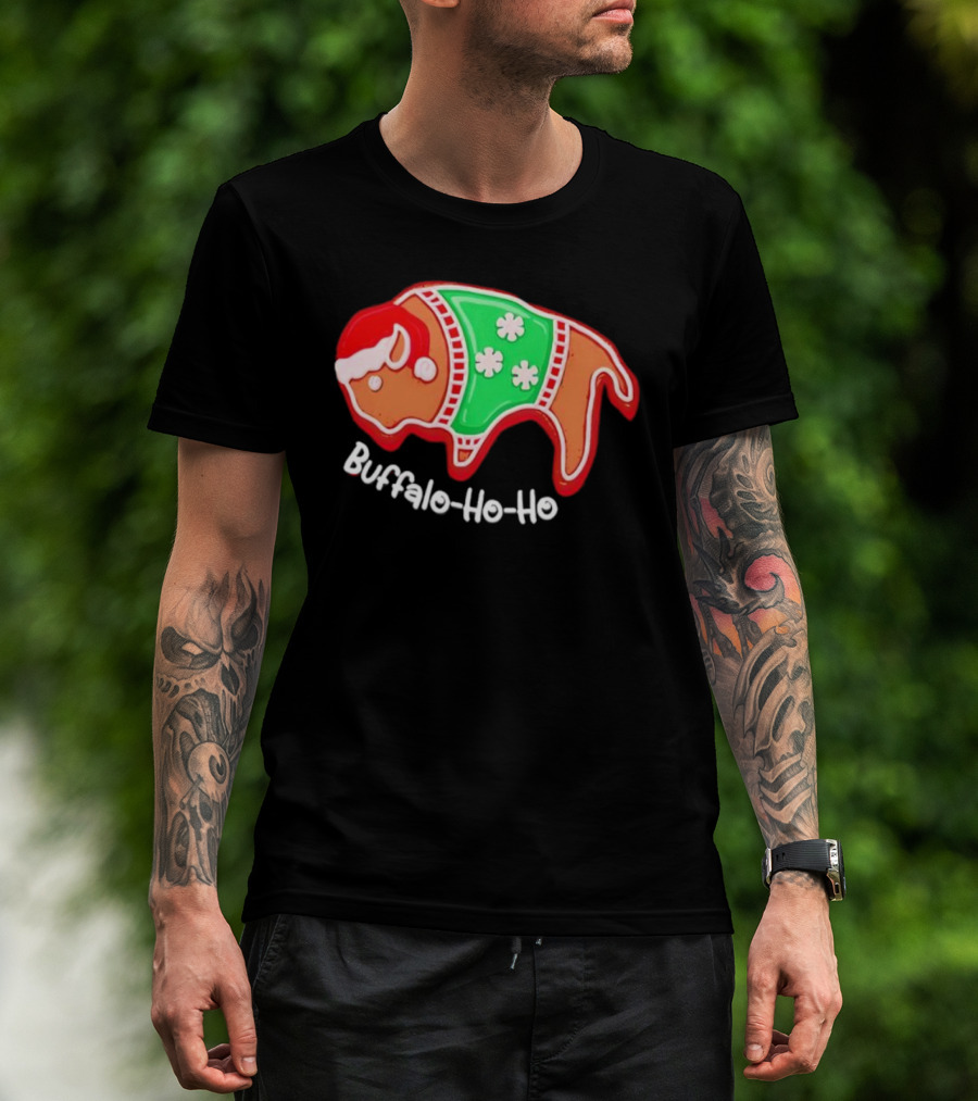 Buffalo-Ho-Ho Christmas Gingerbread Bison Santa T-Shirt