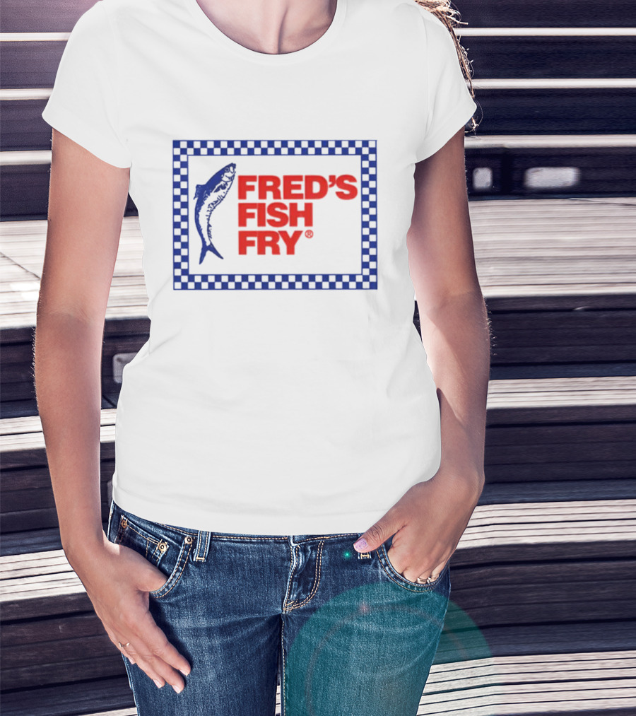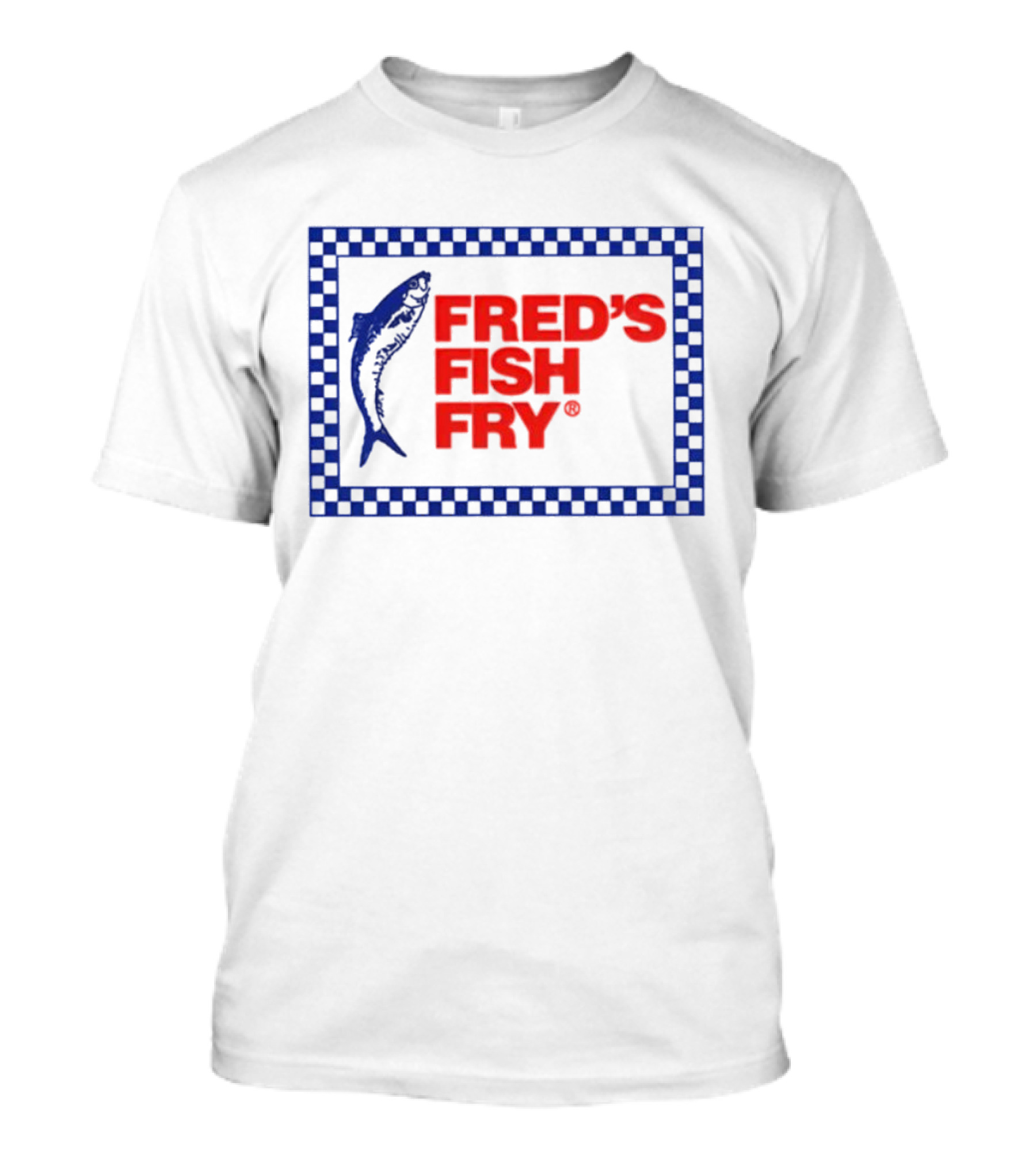 FRED'S FISH FRY Checkered Border With Jumping Fish T-Shirt