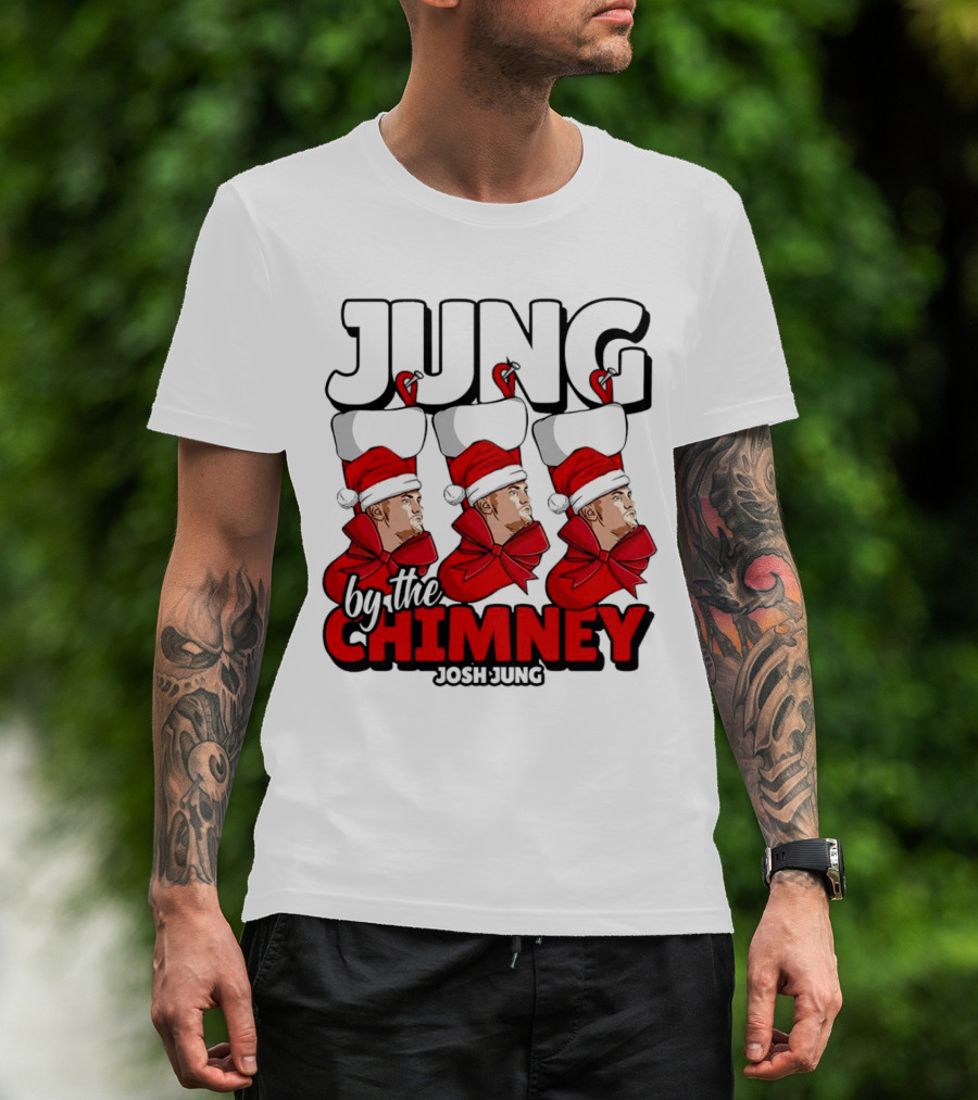 How much will this Jung By the Chimney Josh Jung Texas Rangers Santa Hat Bow shirt shrink?