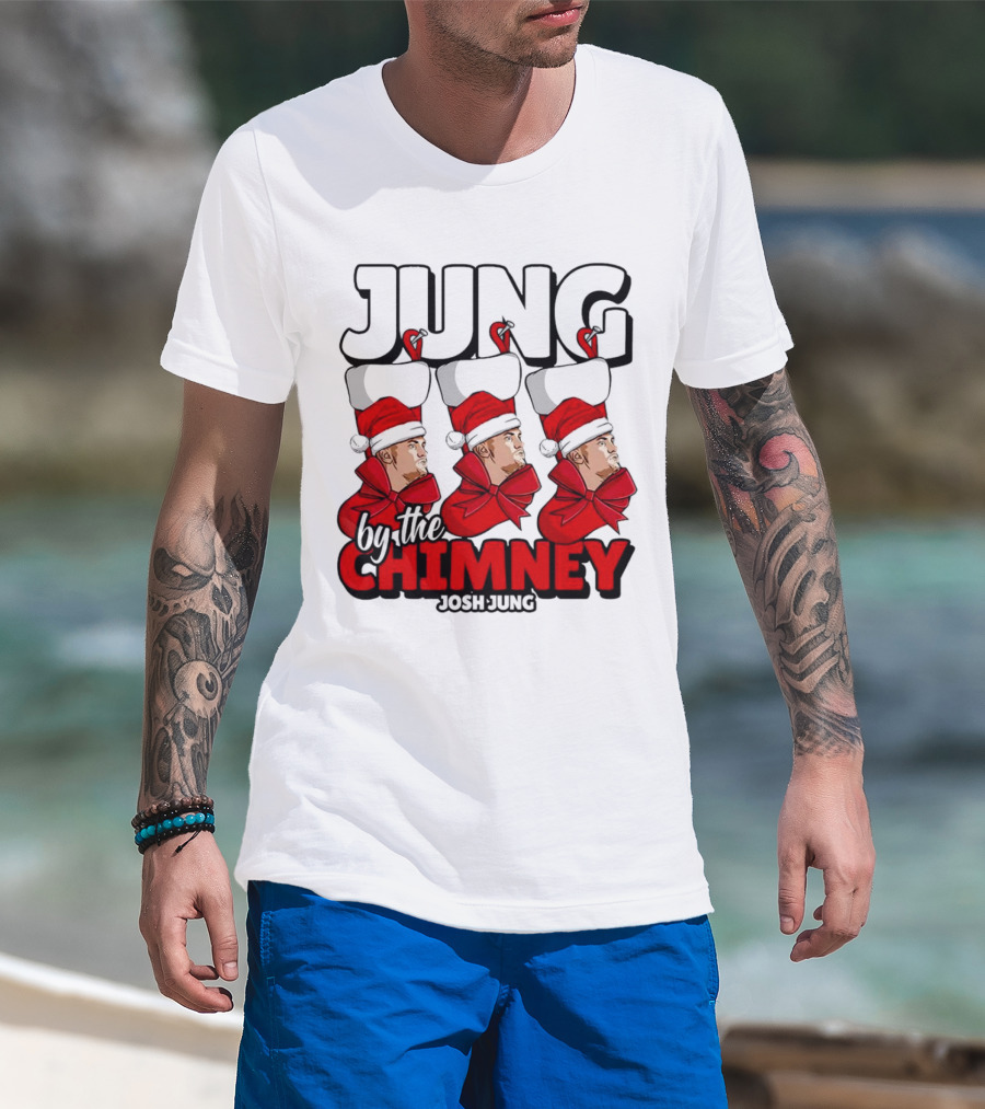 Jung By The Chimney Josh Jung Texas Rangers Santa Hat Bow T-Shirt