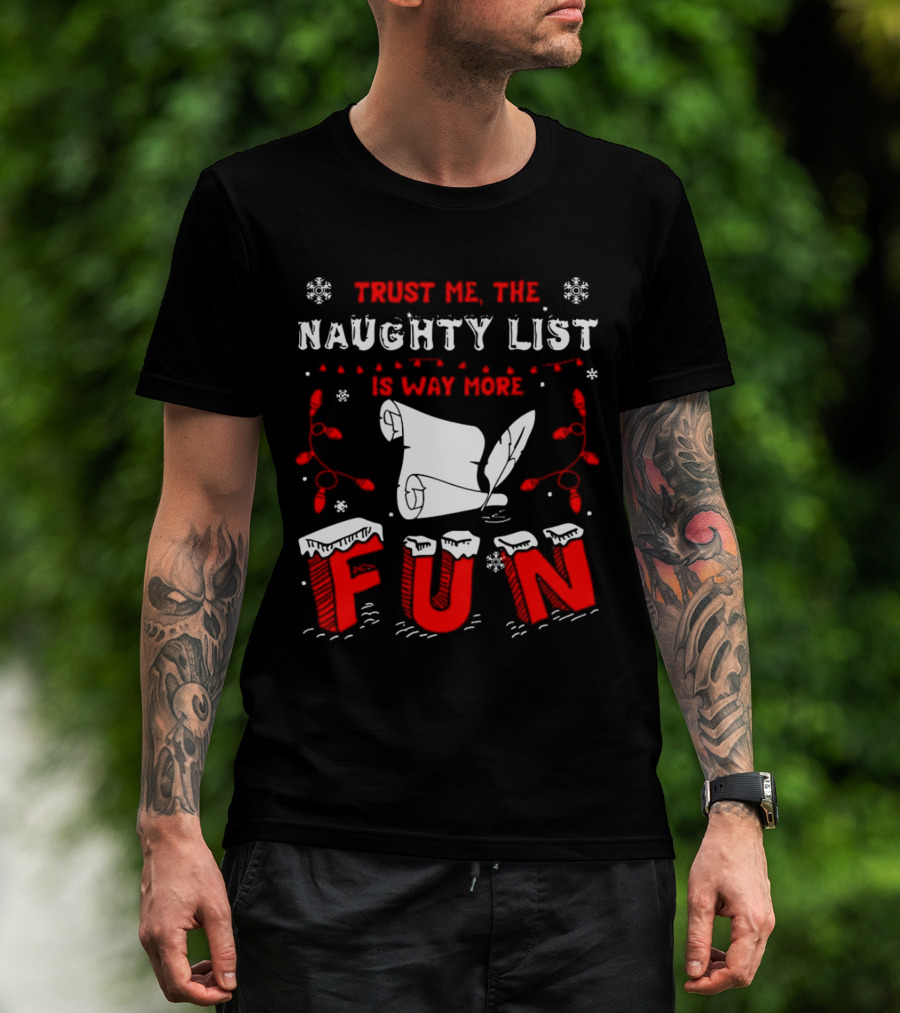 Trust Me The Naughty List Is Way More Fun Christmas Lights Snowflakes T-Shirt