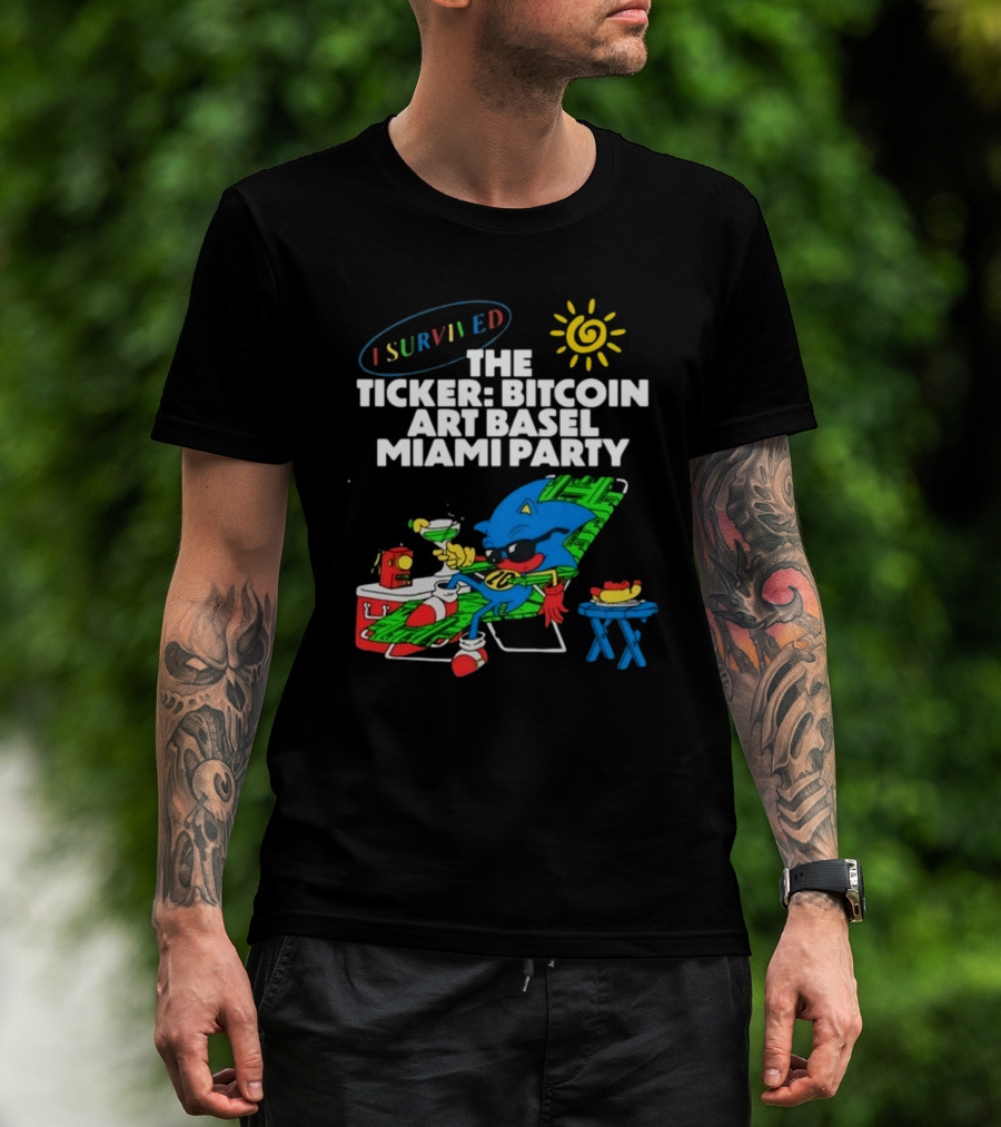 I Survived The Ticker Bitcoin Art Basel Miami Party Lounge Character Sun Cocktail T-Shirt