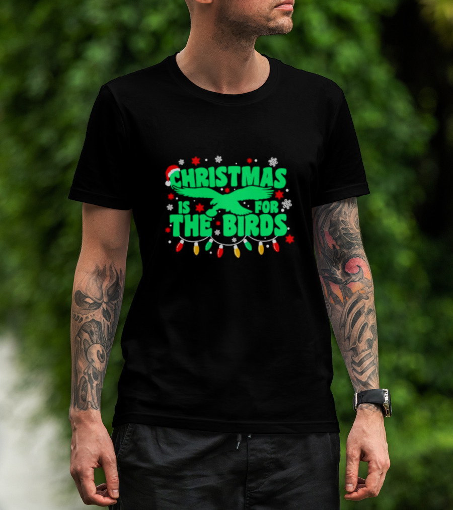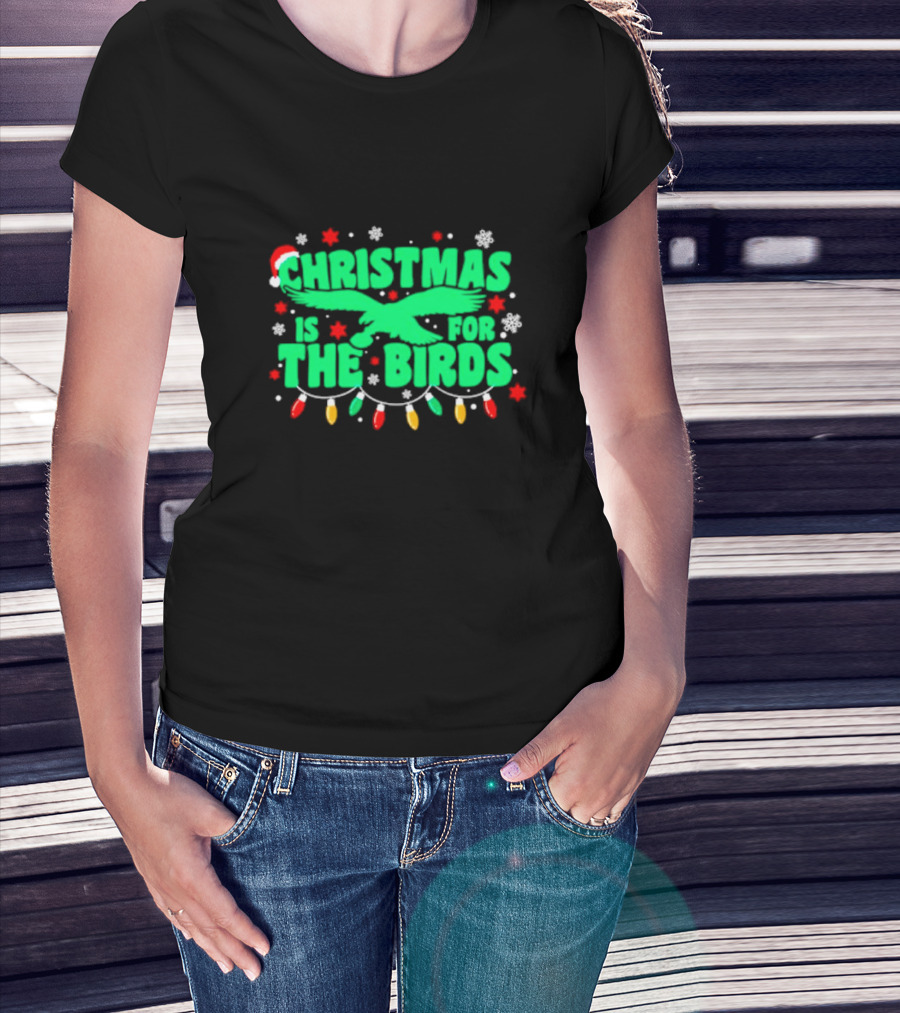 Christmas Is For The Birds Festive Holiday Lights Snowflakes Santa Hat T-Shirt