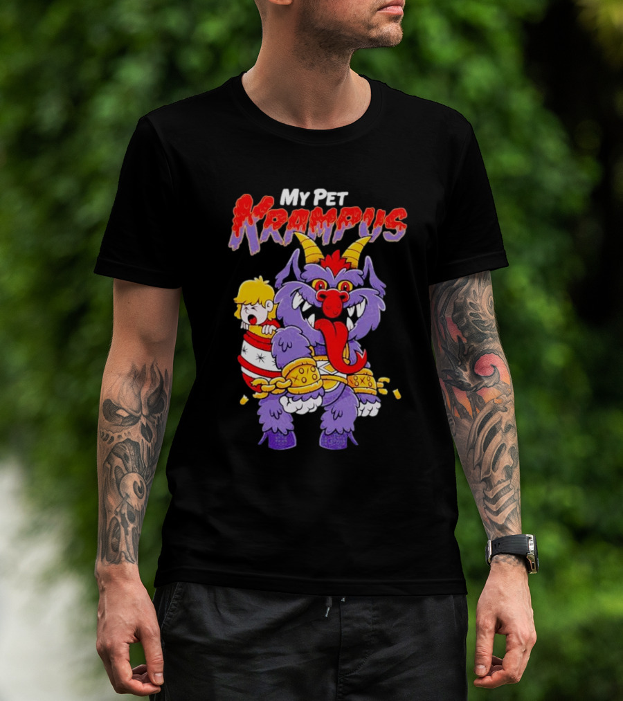 My Pet Krampus Captured Child With Chains And Horned Beast T-Shirt