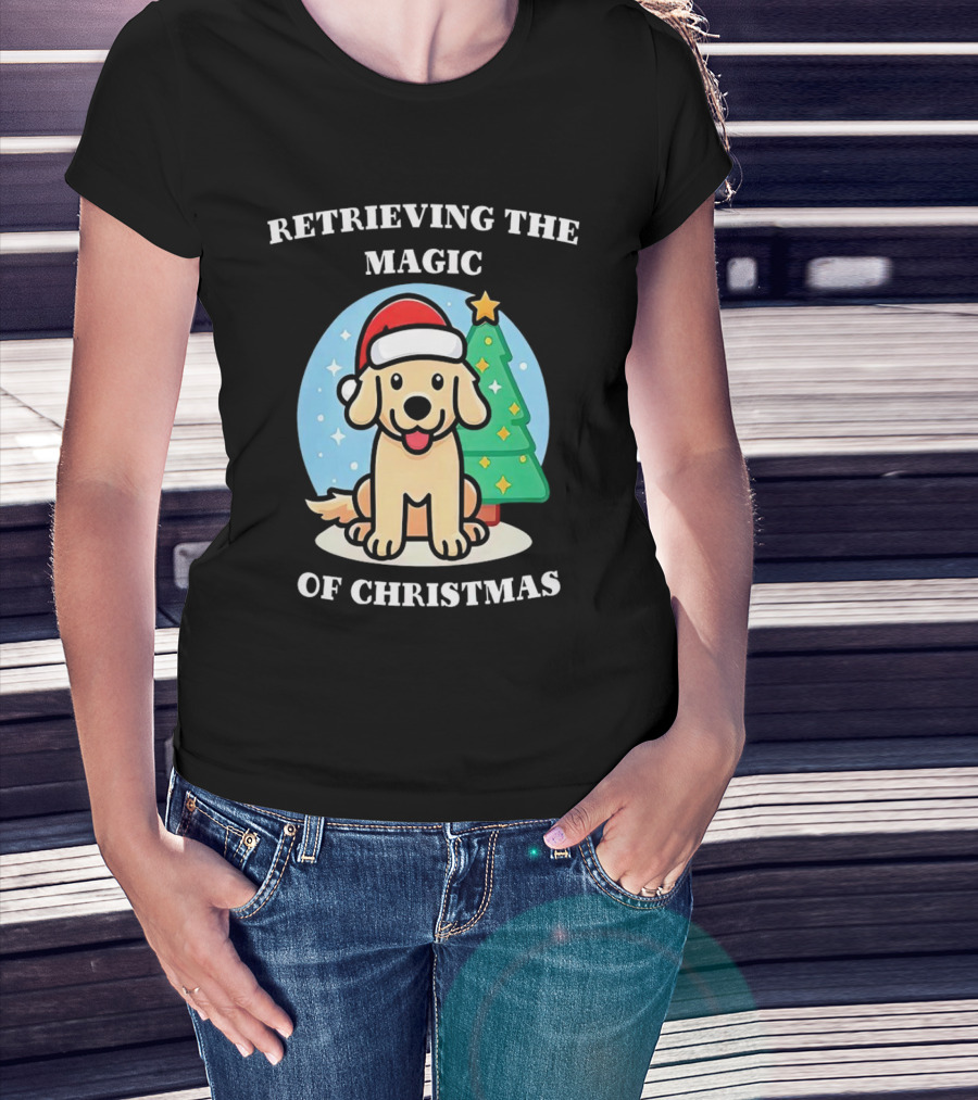 Retrieving The Magic Of Christmas With Santa Dog And Christmas Tree T-Shirt