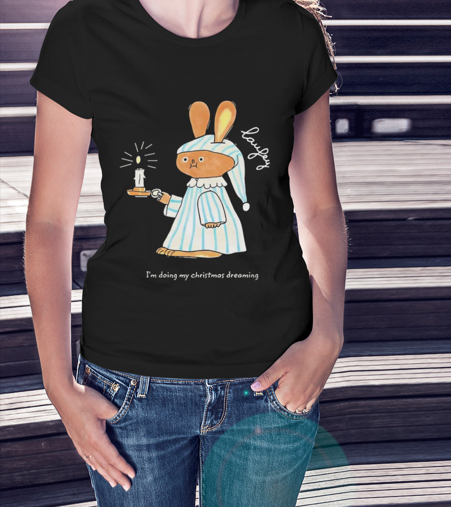 Laufey Bunny In Pajamas Holding Candle I'm Doing My Christmas Dreaming T-Shirt