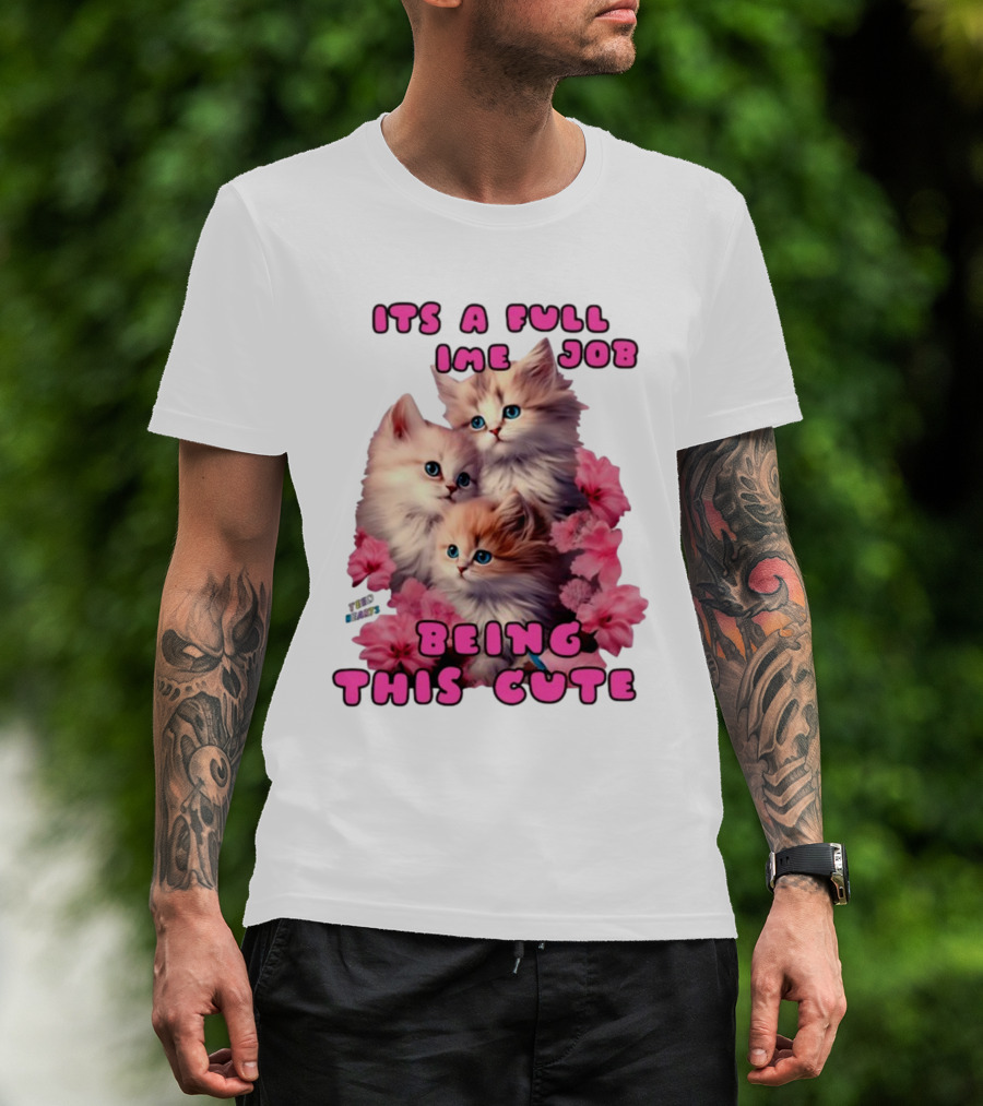 The Its A Full Time Job Being This Cute Kittens Surrounded By Pink Flowers T-shirt is designed for everyday wear and a consistent fit. Fabric is pre-shrunk ring-spun cotton with durable stitching. See the size chart below for exact measurements.