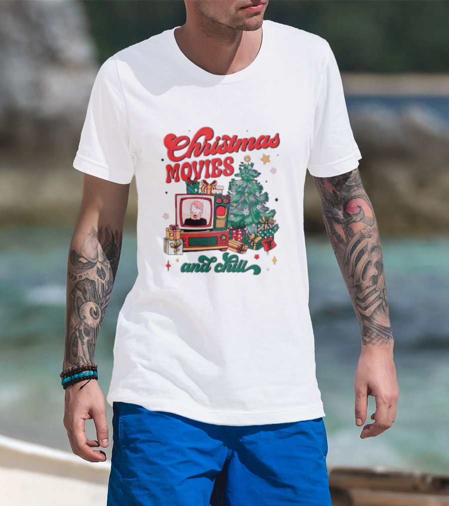 Christmas Movies And Chill Retro TV Christmas Tree Presents T-Shirt