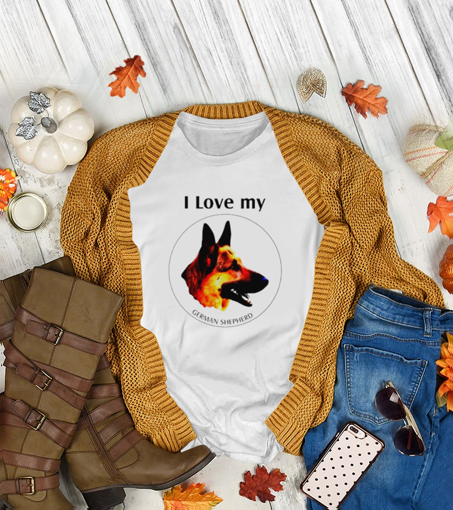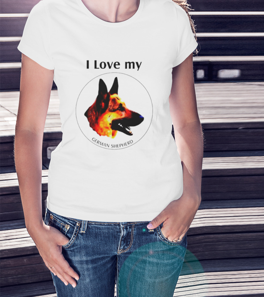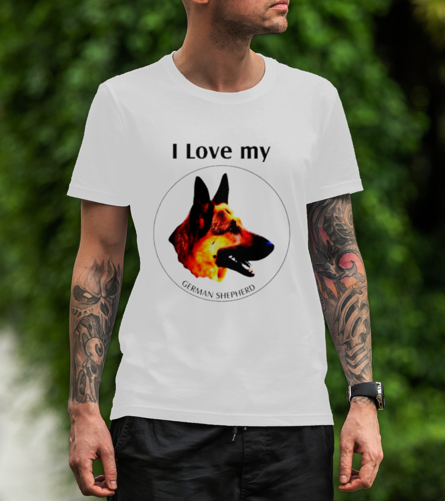 The I Love My German Shepherd German Shepherd T-shirt is designed for everyday wear and a consistent fit. Fabric is pre-shrunk ring-spun cotton with durable stitching. See the size chart below for exact measurements.