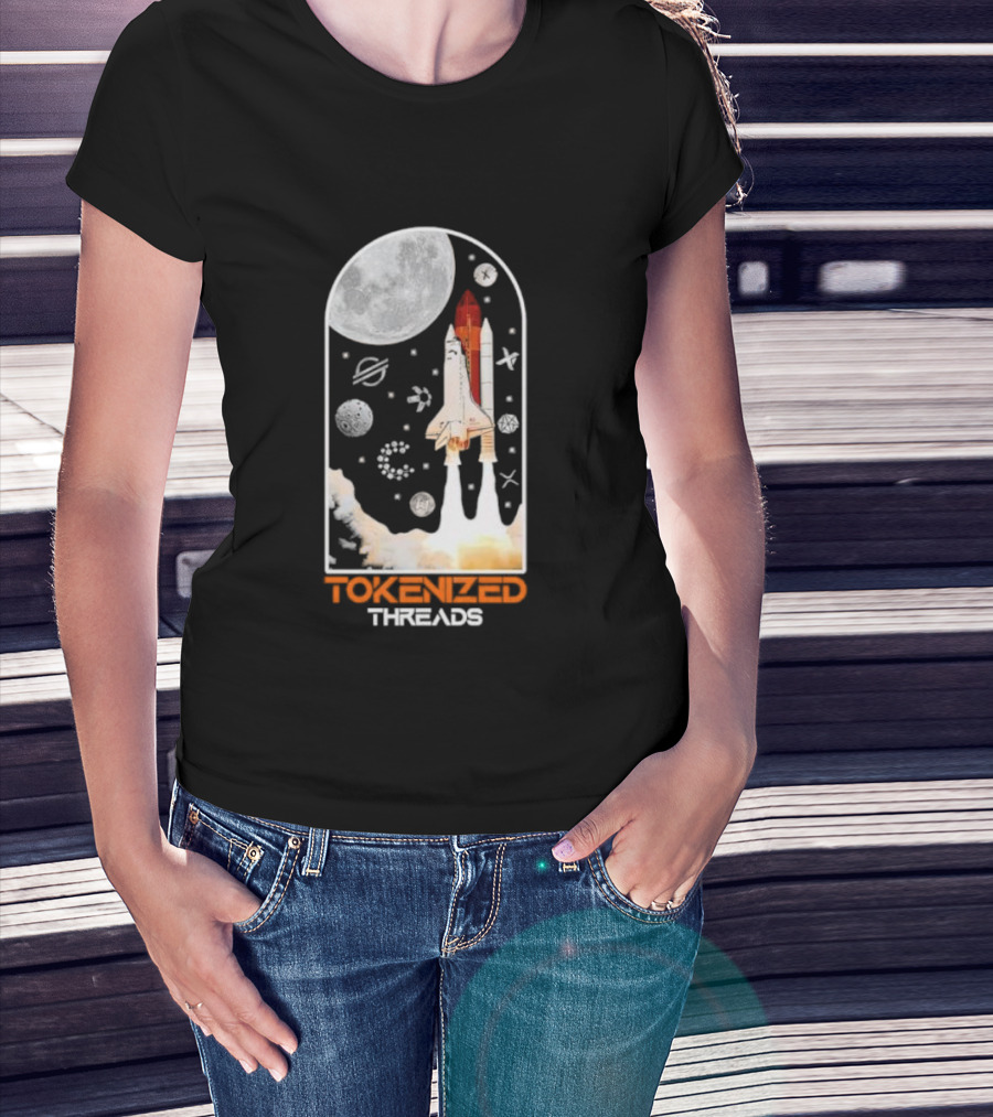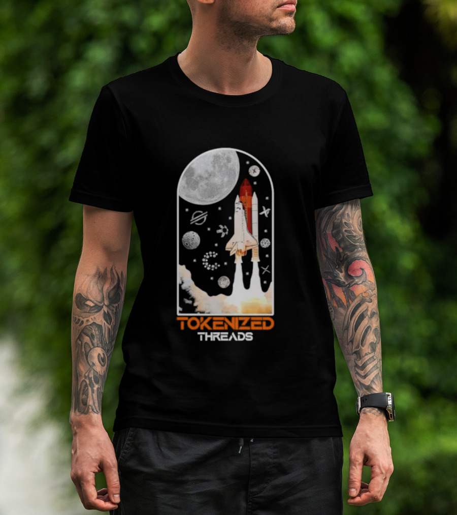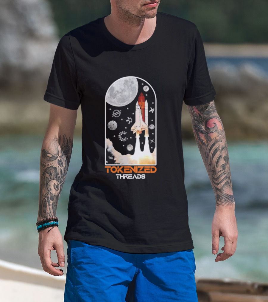 Tokenized Threads Space Shuttle Launch Under Moon With Planets And Stars T-Shirt