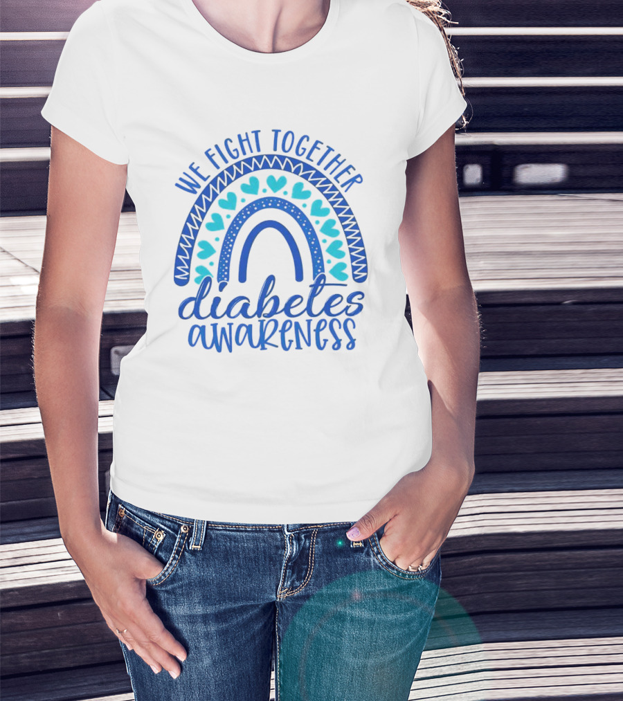 We Fight Together Diabetes Awareness Blue Heart Rainbow T-Shirt
