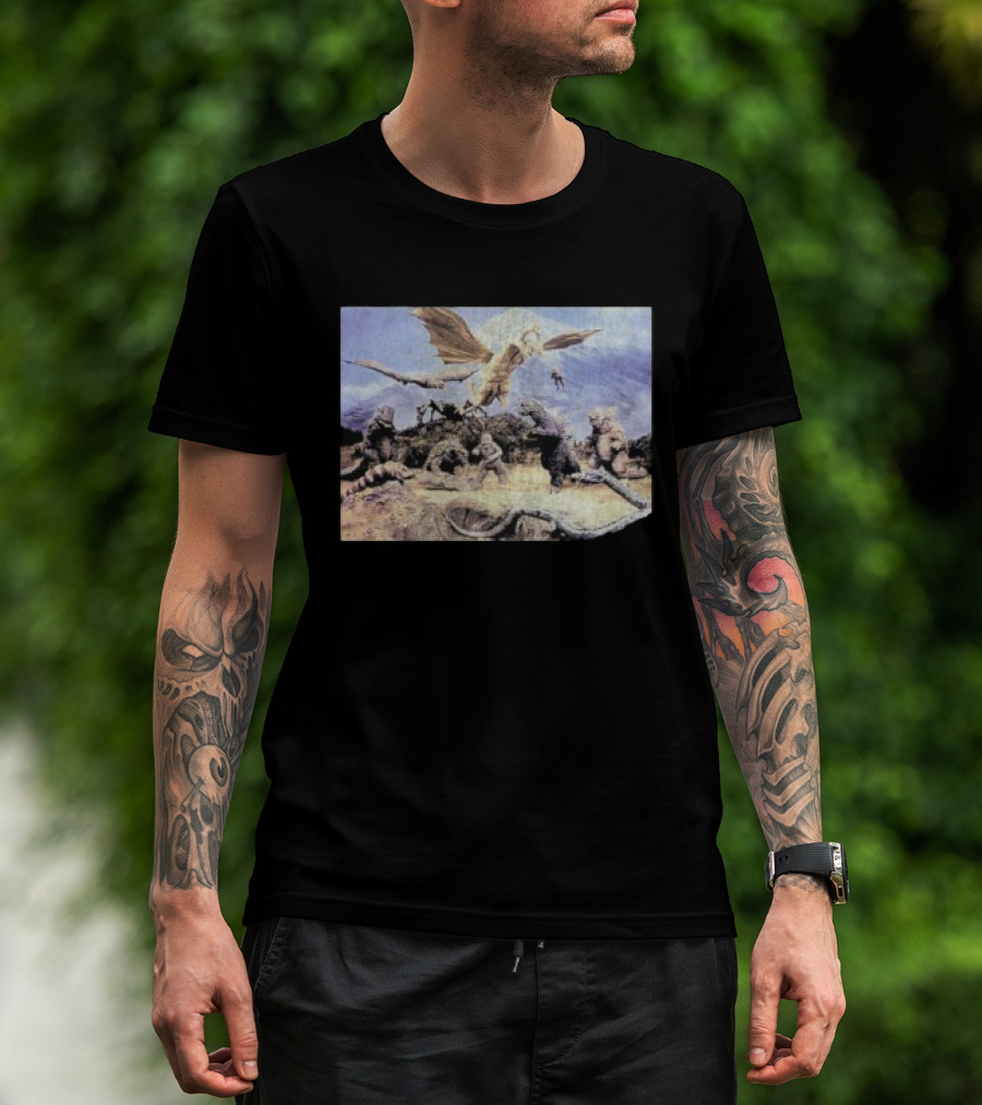 Destroy All Monsters Group Kaiju Battle Scene T-Shirt