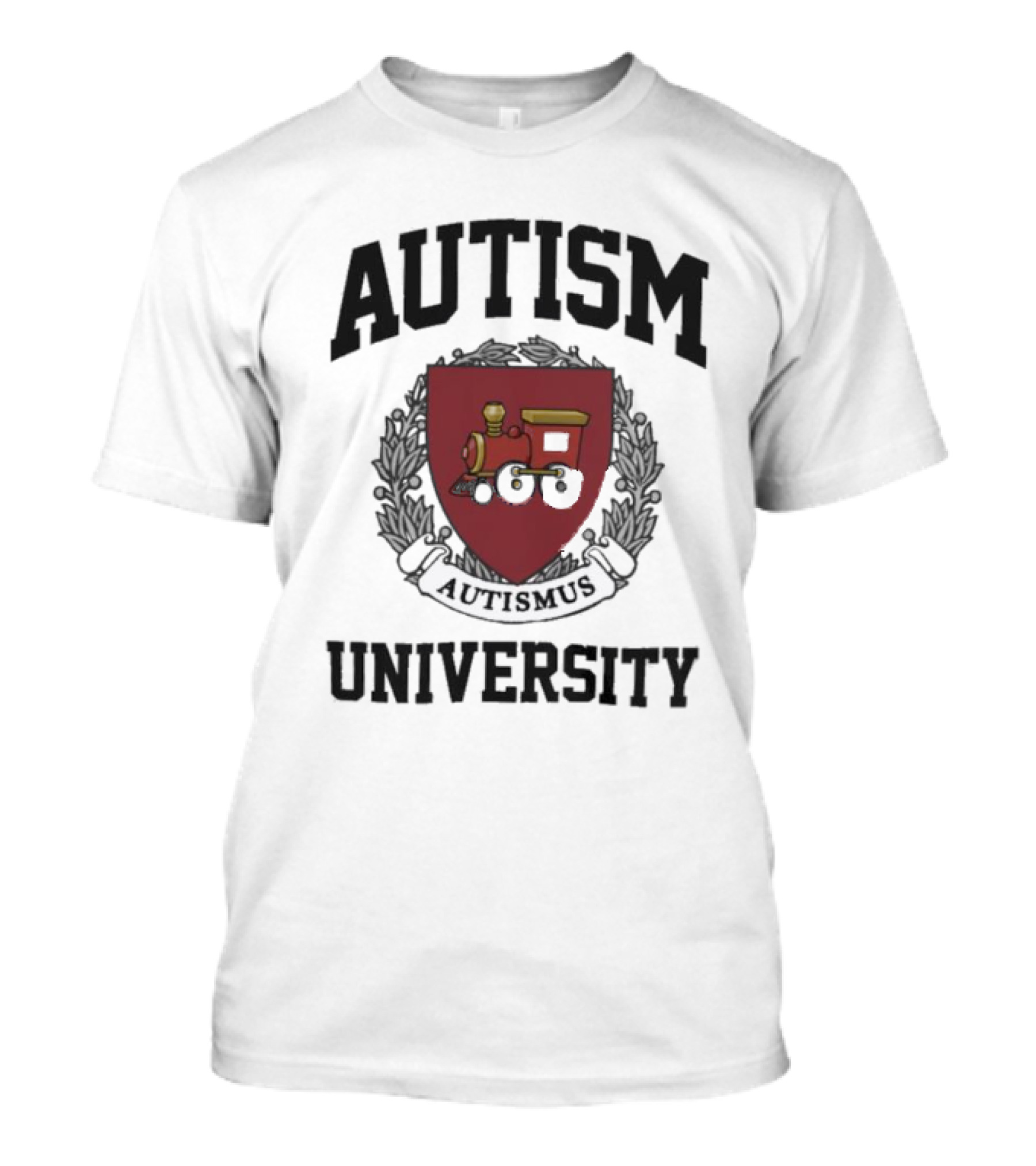 The Autism Autismus University Train Emblem T-shirt is designed for everyday wear and a consistent fit. Fabric is pre-shrunk ring-spun cotton with durable stitching. See the size chart below for exact measurements.