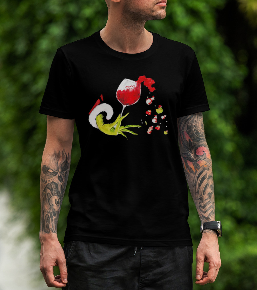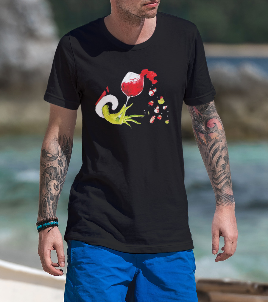 Grinch Hand Christmas Wine Glass Festive Holiday T-Shirt