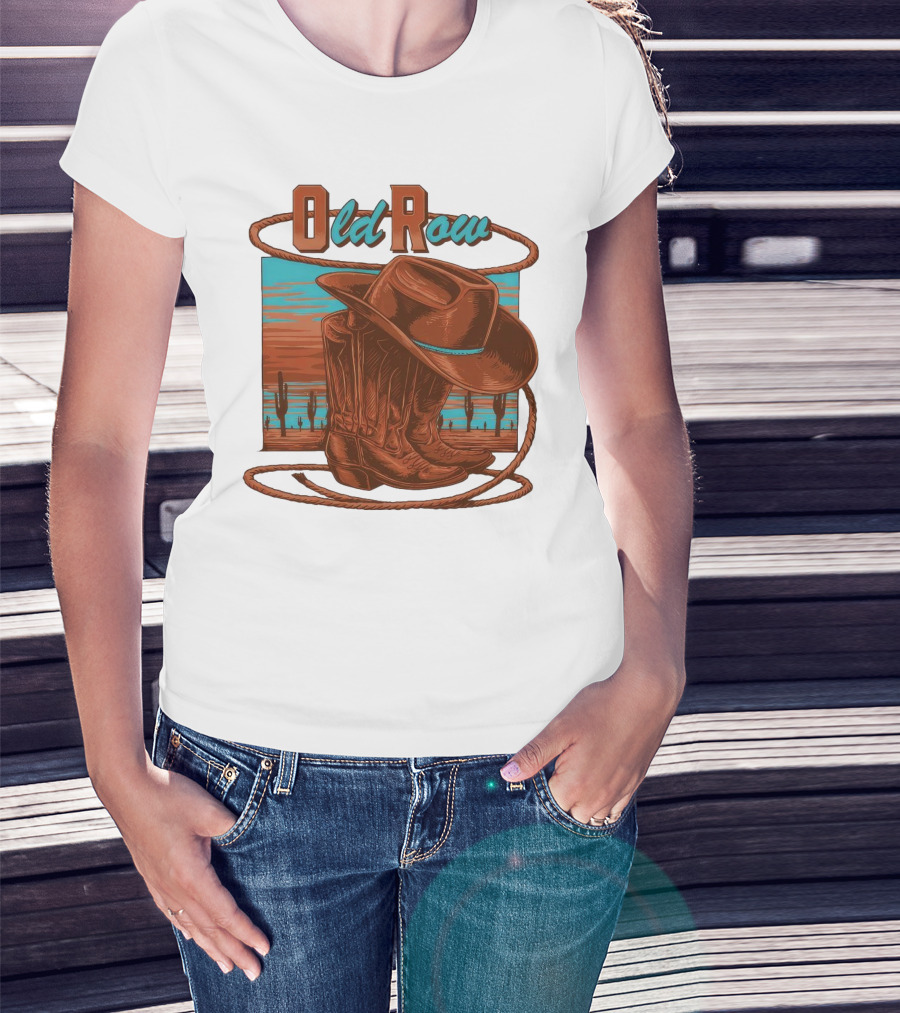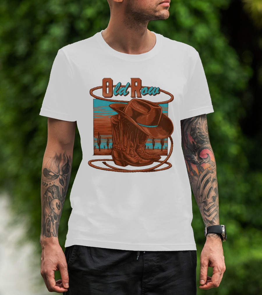 Old Row Western Cowboy Boots And Hat Desert Scene T-Shirt