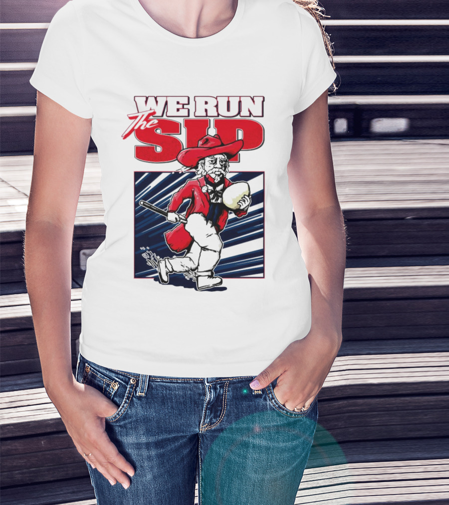 We Run The Sip Ole Miss Rebels Football Mascot Running With Ball T-Shirt