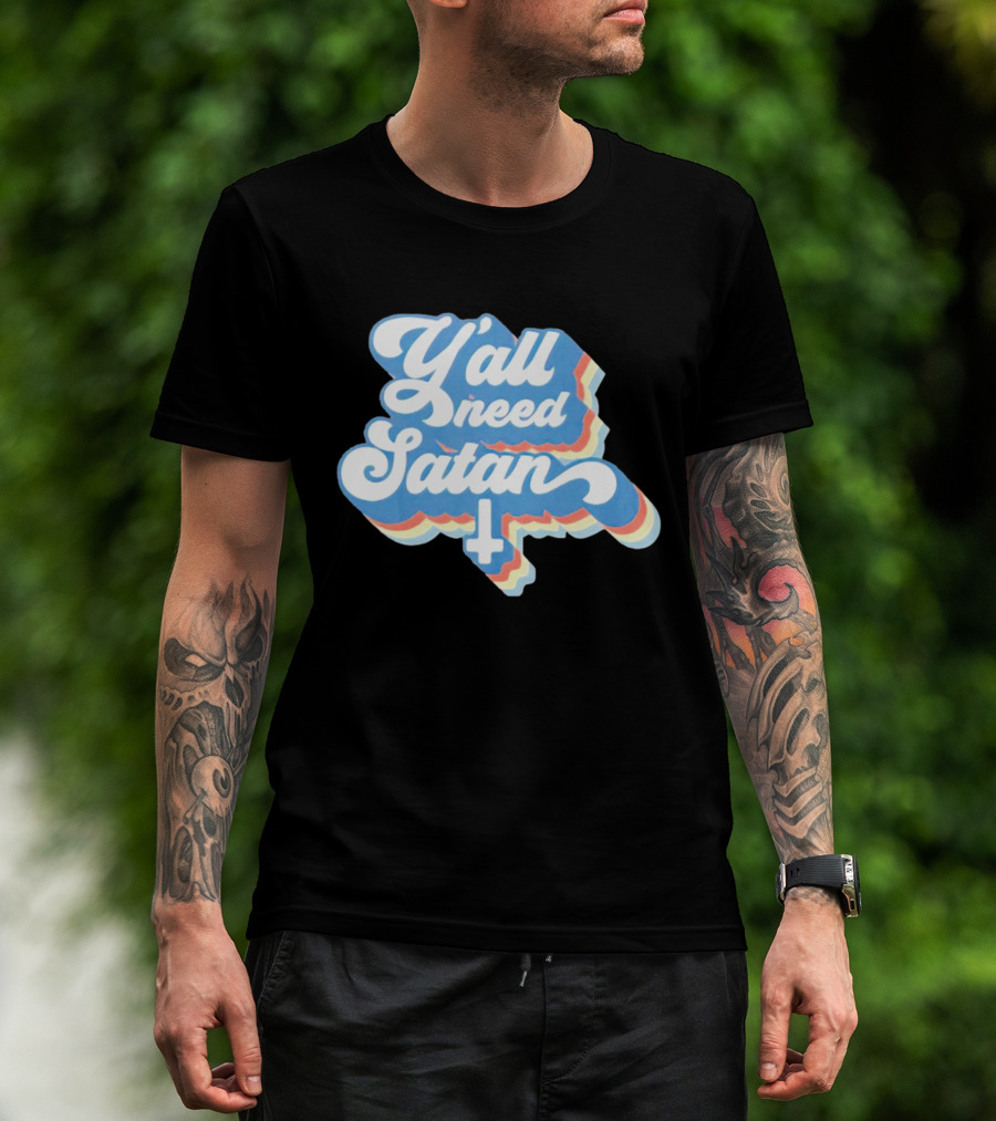 Y’all Need Satan Retro Style Text With Inverted Cross T-Shirt