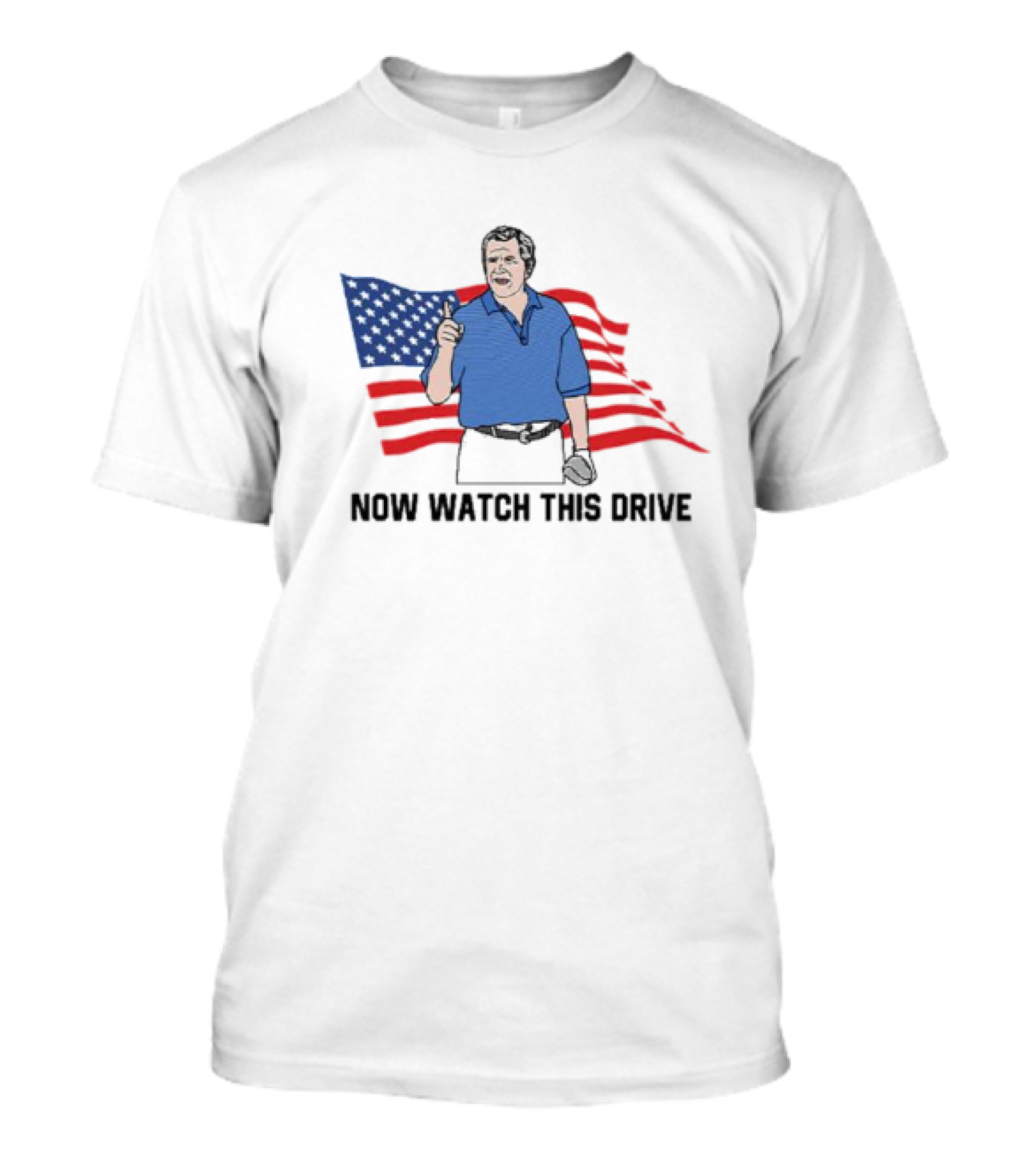 NOW WATCH THIS DRIVE American Flag Golfing Scene T-Shirt