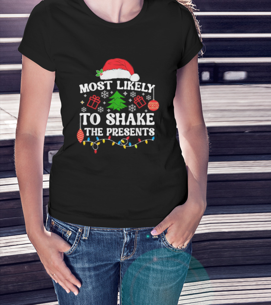 Most Likely To Shake The Presents Christmas Family Matching Santa Hat Ornaments Snowflakes T-Shirt