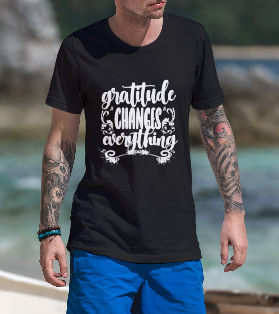 Gratitude Changes Everything White Script With Decorative Swirls T-Shirt