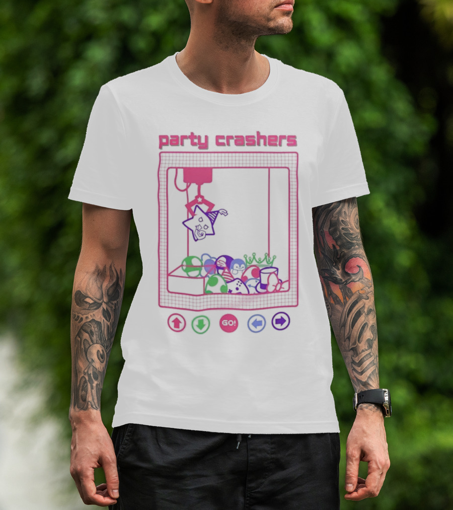 The Party Crashers Crane Game Retro Neon T-shirt is designed for everyday wear and a consistent fit. Fabric is pre-shrunk ring-spun cotton with durable stitching. See the size chart below for exact measurements.
