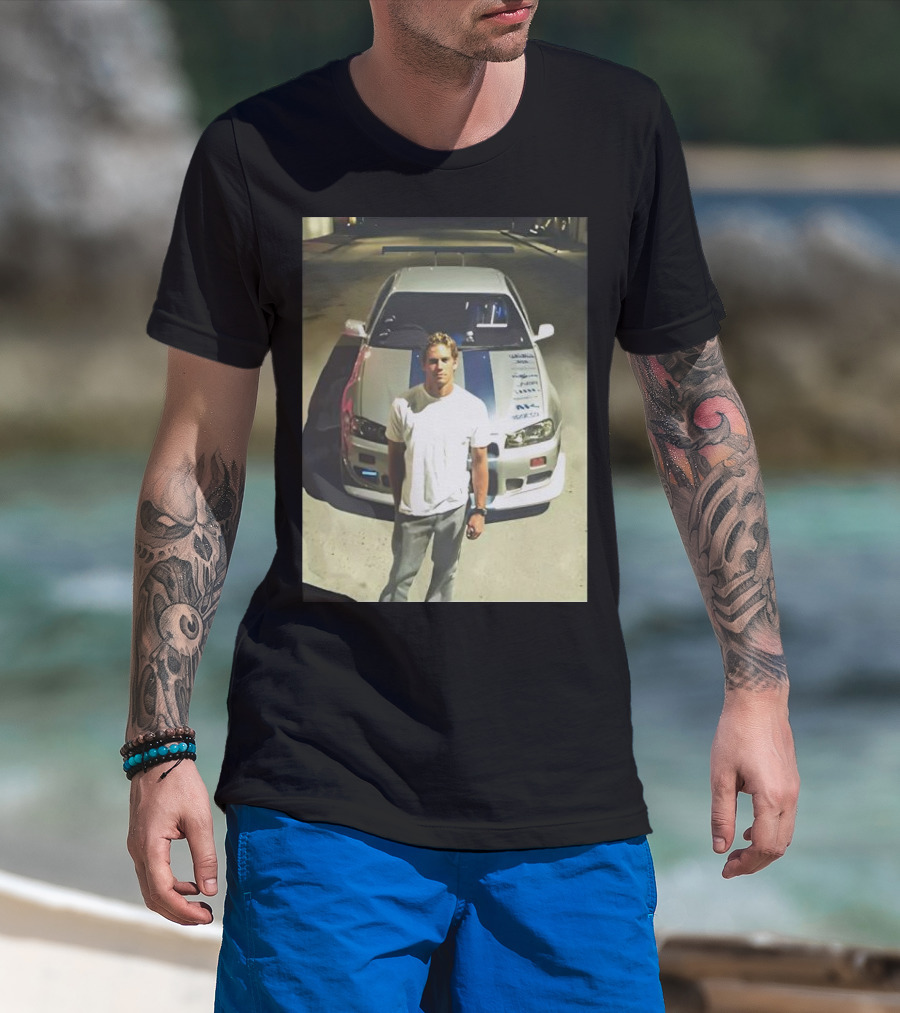 Paul Walker Giving Season With Iconic Car Street Scene T-Shirt