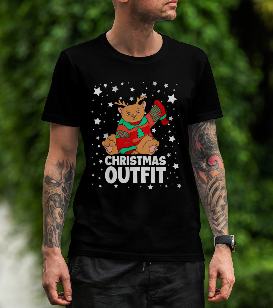 Bear Reindeer Christmas Outfit With Festive Sweater And Stars T-Shirt