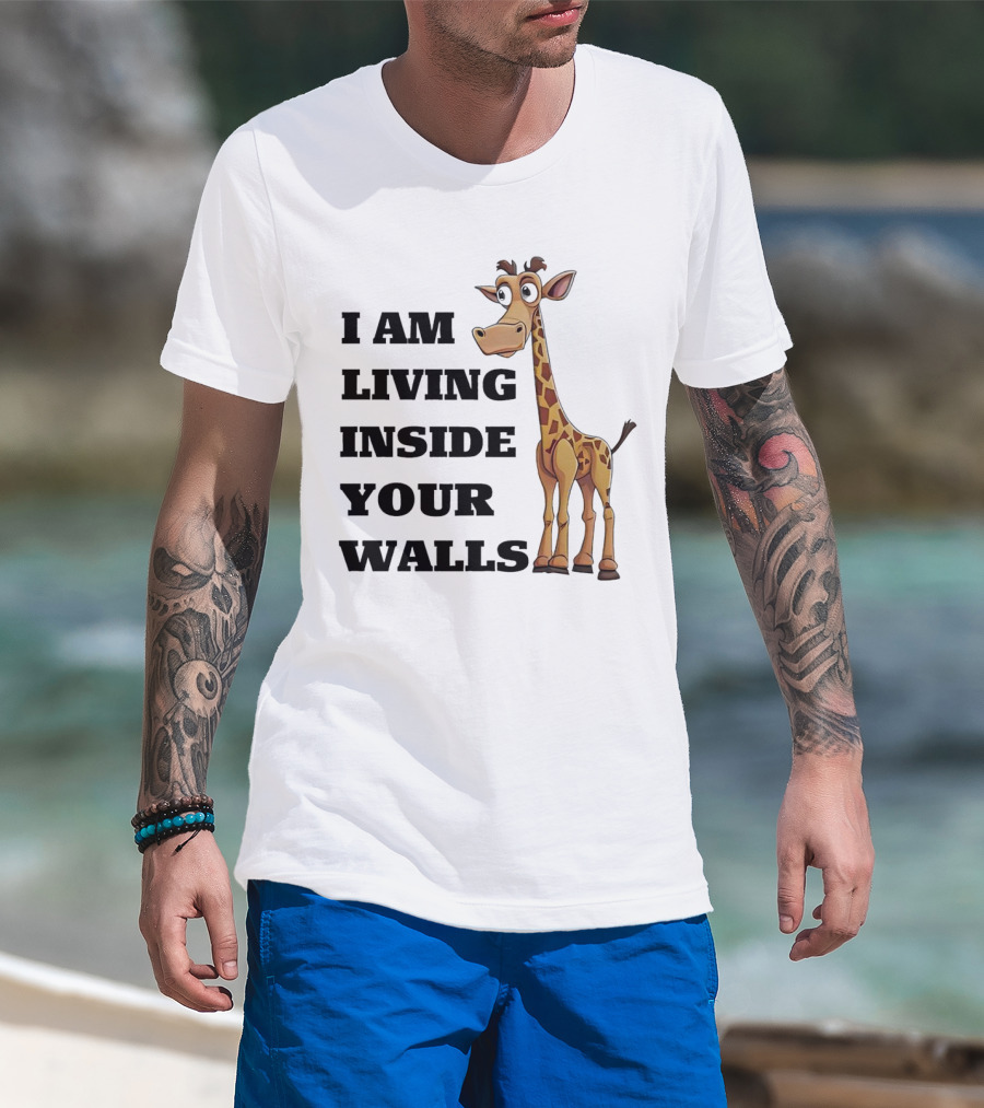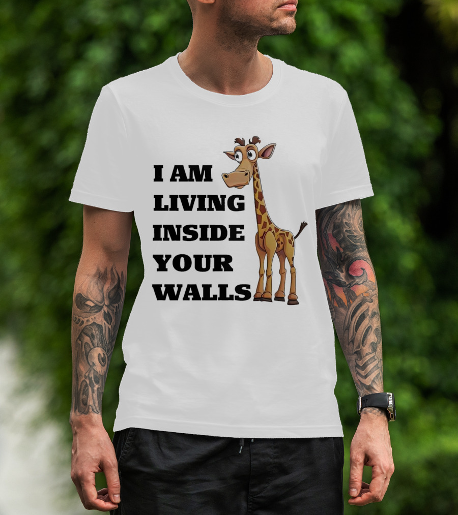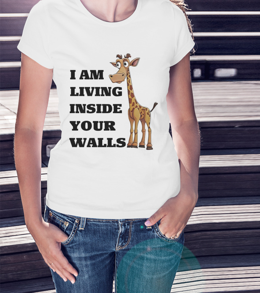 I Am Living Inside Your Walls Funny Cartoon Giraffe T-Shirt