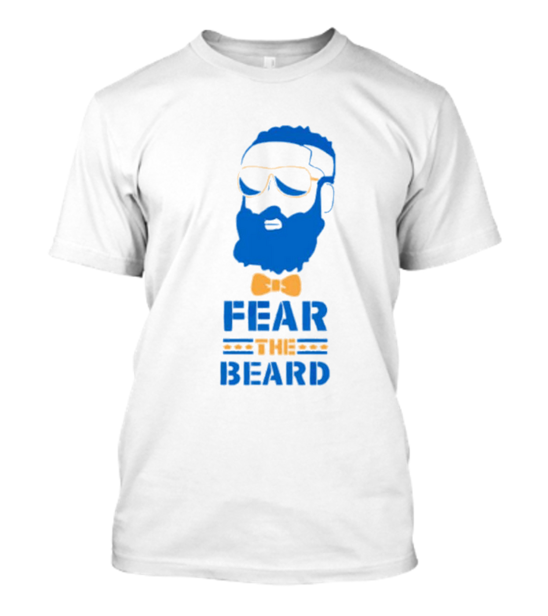 The James Harden Basketball Fear the Beard Iconic Blue and Orange T-shirt is designed for everyday wear and a consistent fit. Fabric is pre-shrunk ring-spun cotton with durable stitching. See the size chart below for exact measurements.