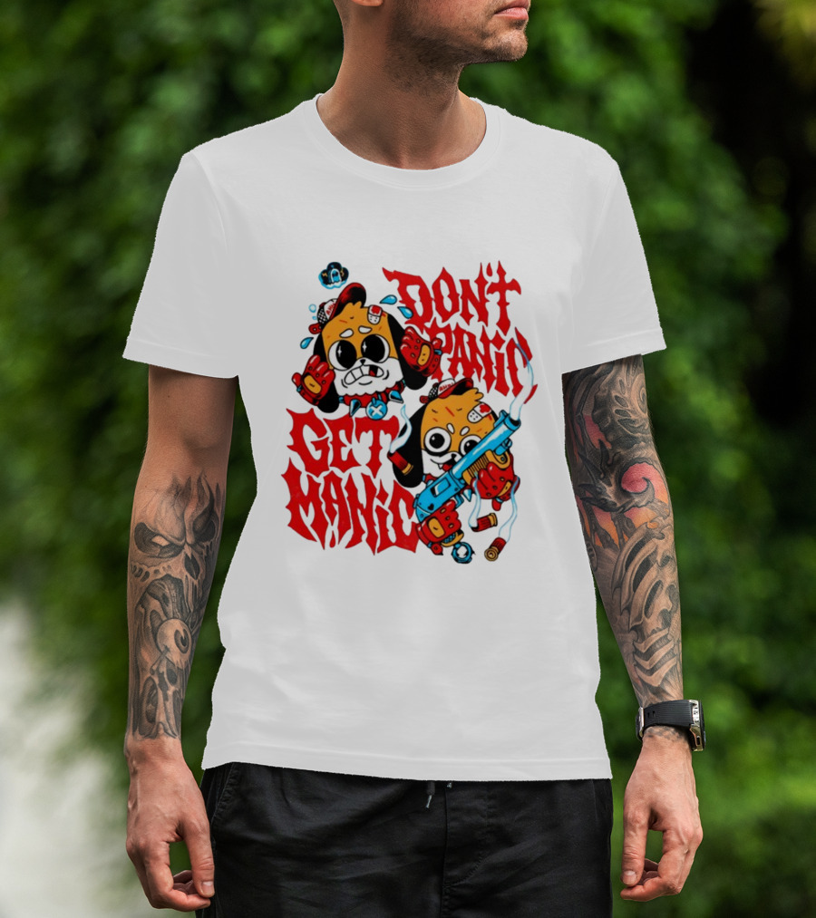 Don't Panic Get Manic Cartoon Characters With Colorful Styling And Playful T-Shirt