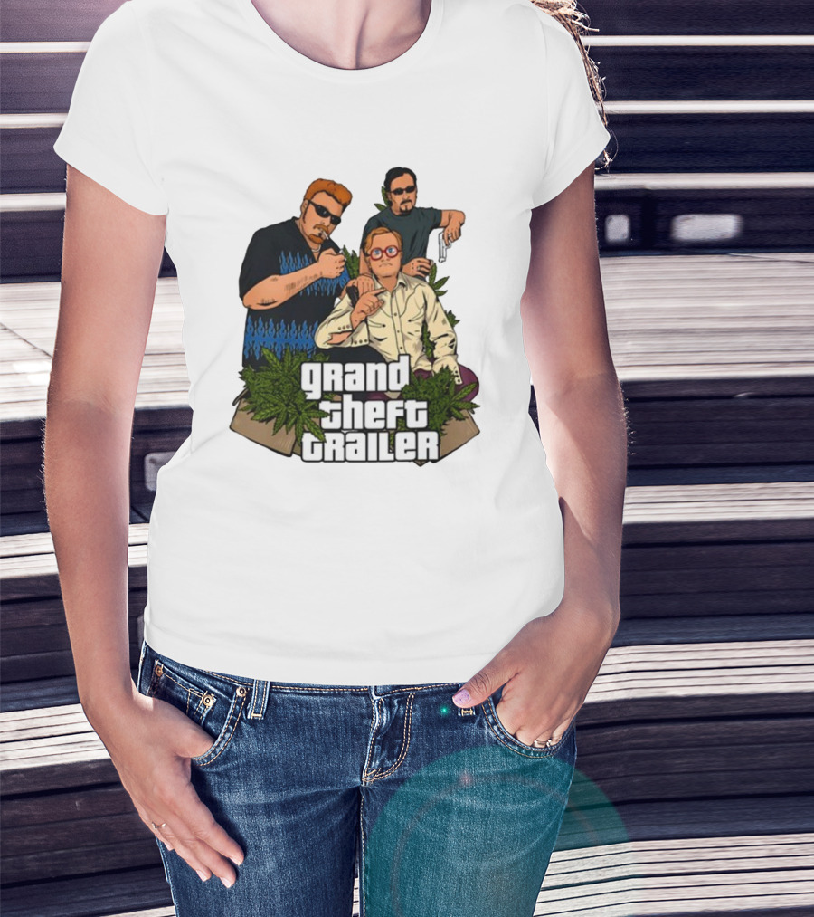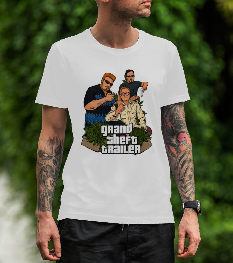 Grand Theft Trailer Cannabis Comedy Trio With Sunglasses And Pistol T-Shirt