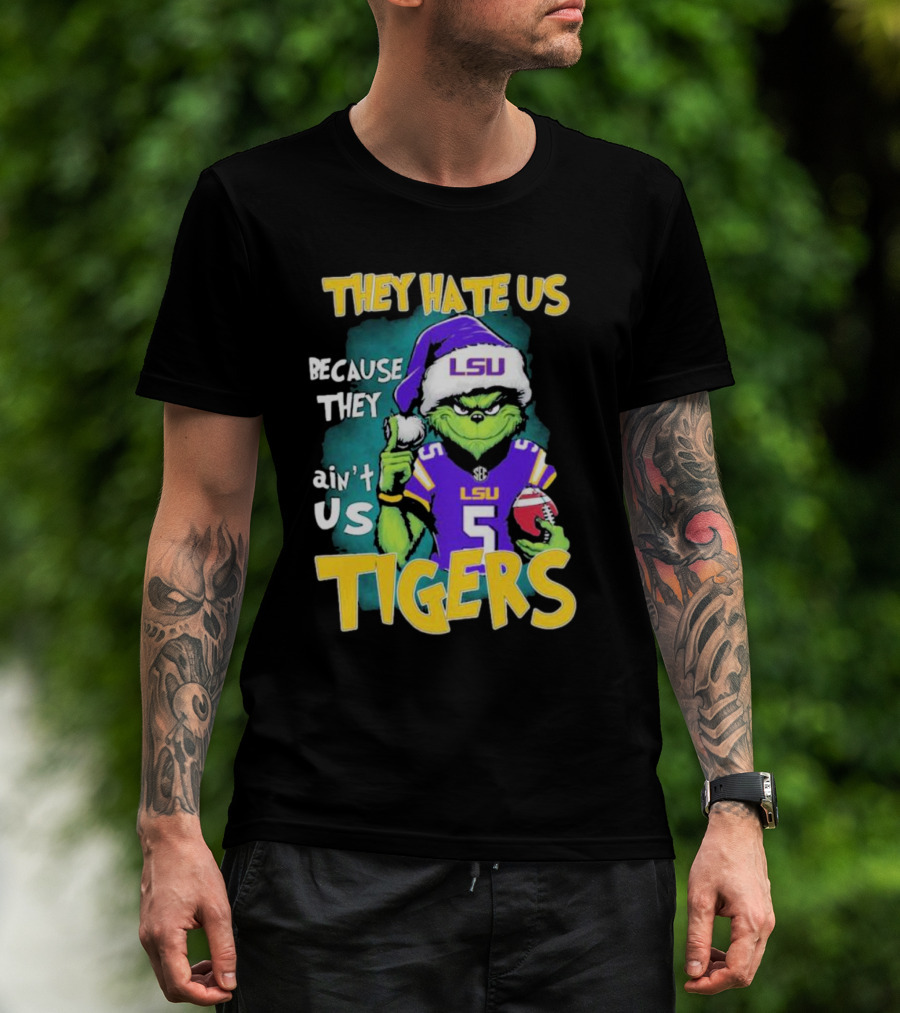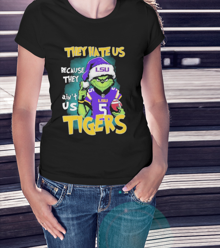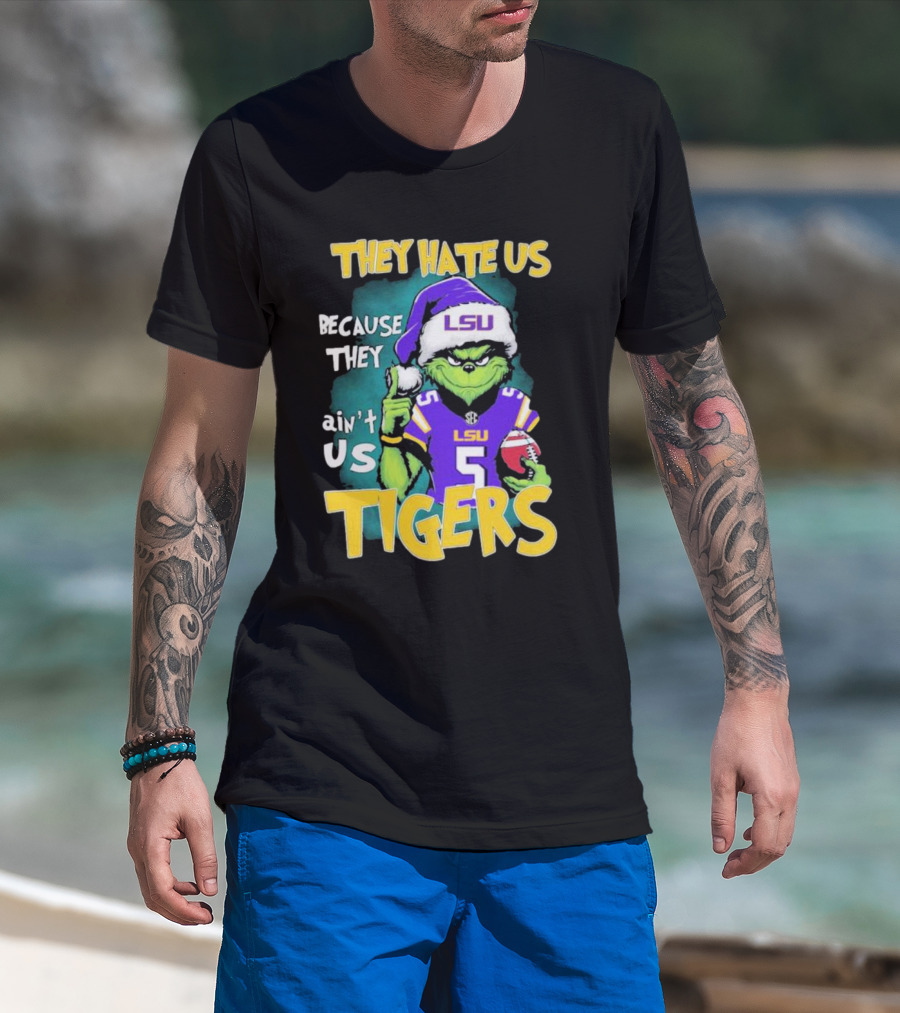 They Hate Us Because They Ain't Us LSU Tigers Grinch Football Christmas T-Shirt