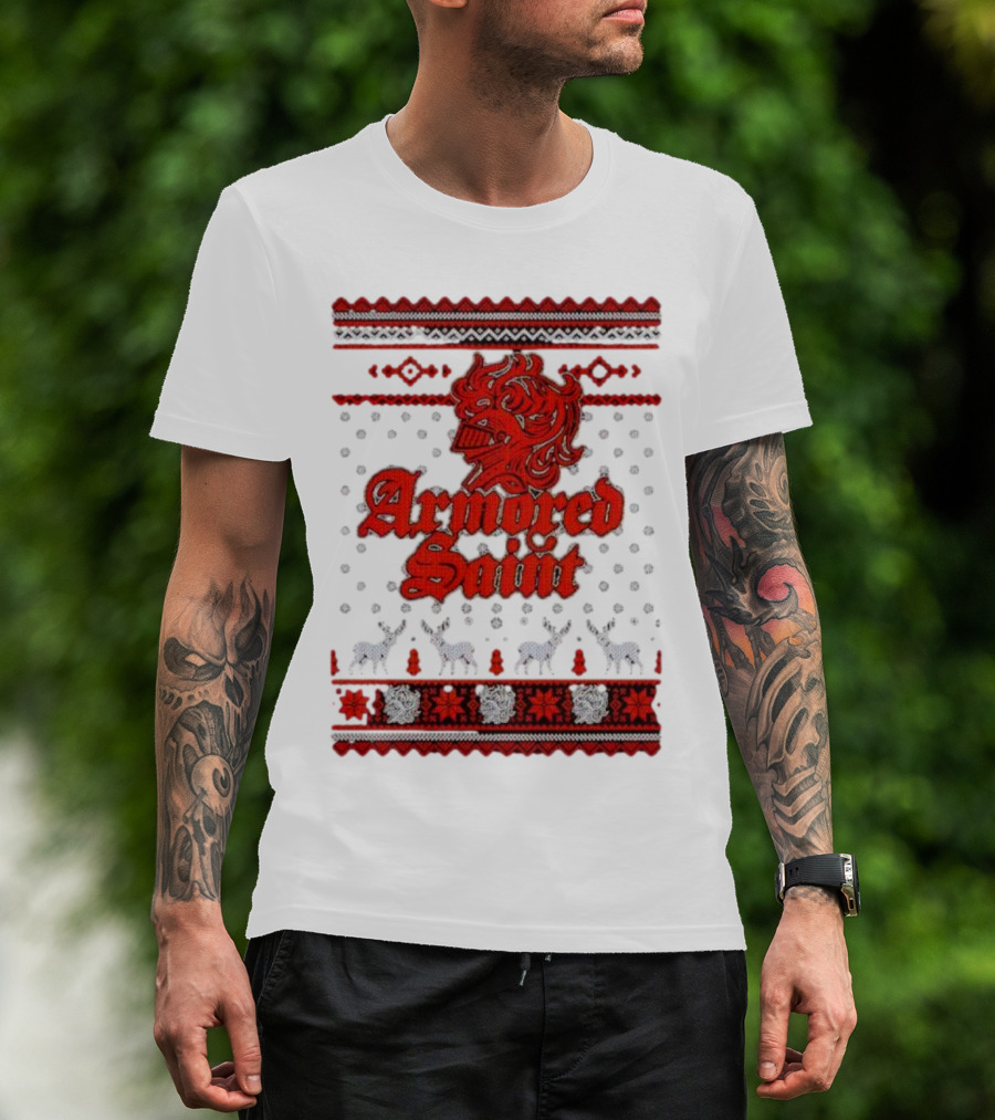 The Armored Saint Red Knight Christmas T-shirt is designed for everyday wear and a consistent fit. Fabric is pre-shrunk ring-spun cotton with durable stitching. See the size chart below for exact measurements.