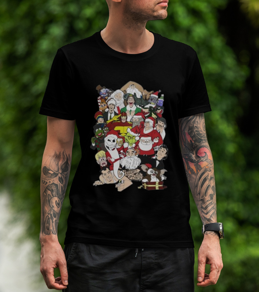 Naughty Or Nice Christmas Chaos Characters Featuring Santa Grinch Gizmo Jack Frost T-Shirt