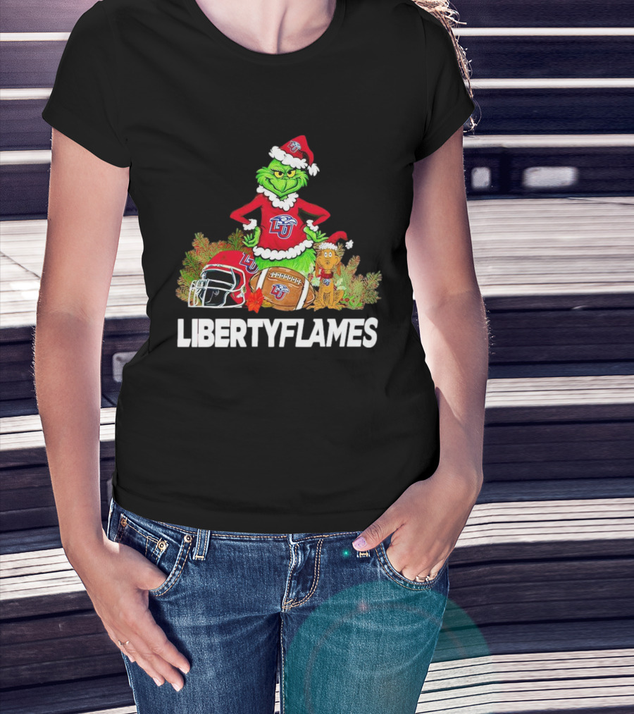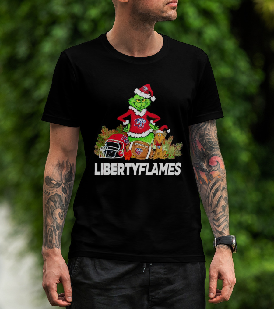 Grinch Liberty Flames Christmas Football FIU Santa Hat T-Shirt