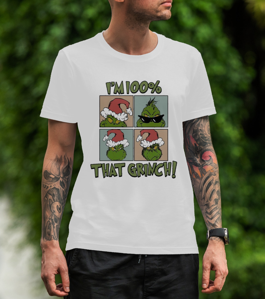 I'm 100% That Grinch Christmas Icon With Santa Hat And Sunglasses T-Shirt