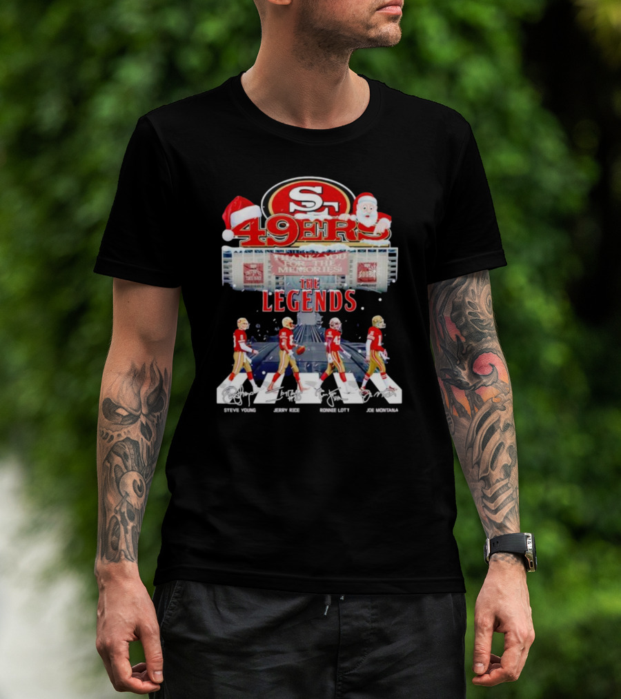 49ers The Legends Abbey Road Steve Young Jerry Rice Ronnie Lott Joe Montana Christmas Signatures T-Shirt