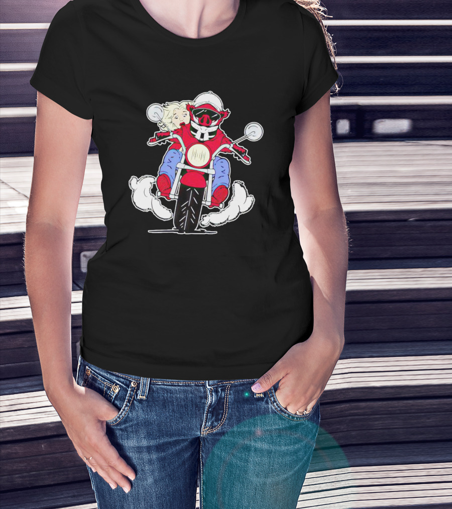 Arkansas Razorbacks Mascot Riding Motorcycle With Passenger T-Shirt