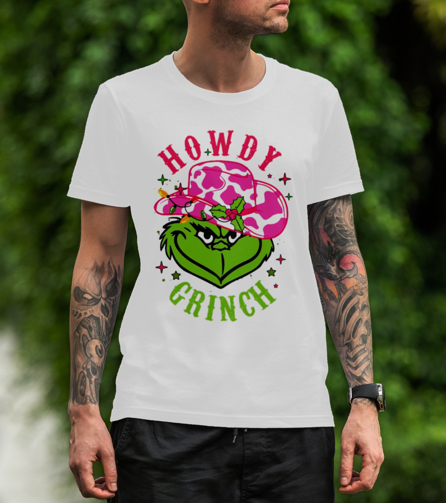 Howdy Grinch Christmas Cowboy Hat Festive Lights T-Shirt