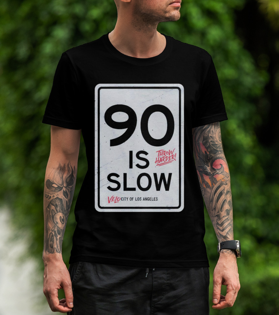 Throw Harder 90 Is Slow Velo City Of Los Angeles T-Shirt