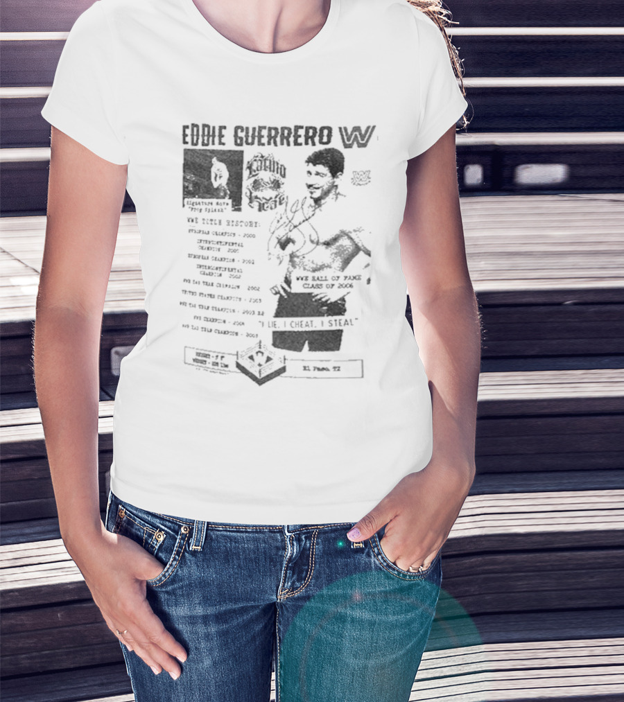 Eddie Guerrero Latino Heat WWE Hall Of Fame Lie Cheat Steal Fanzine Collage Ripple Junction T-Shirt