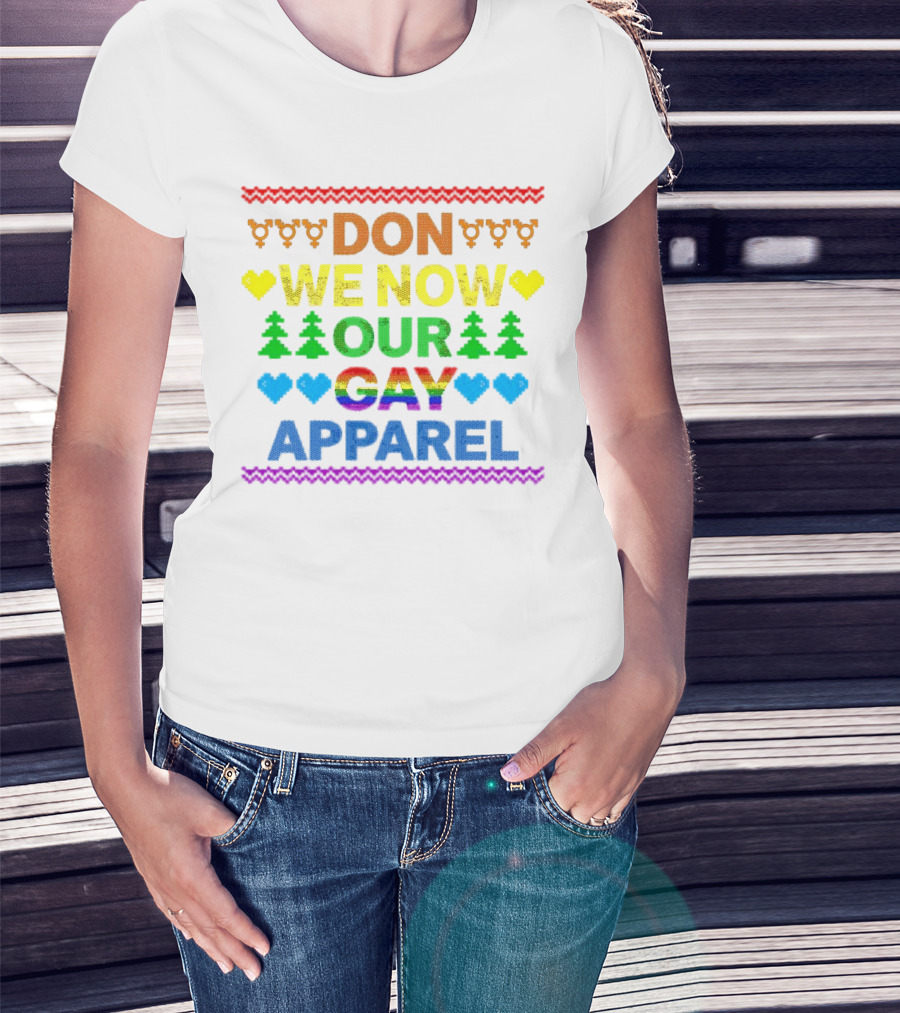 The DON WE NOW OUR GAY T-shirt is designed for everyday wear and a consistent fit. Fabric is pre-shrunk ring-spun cotton with durable stitching. See the size chart below for exact measurements.