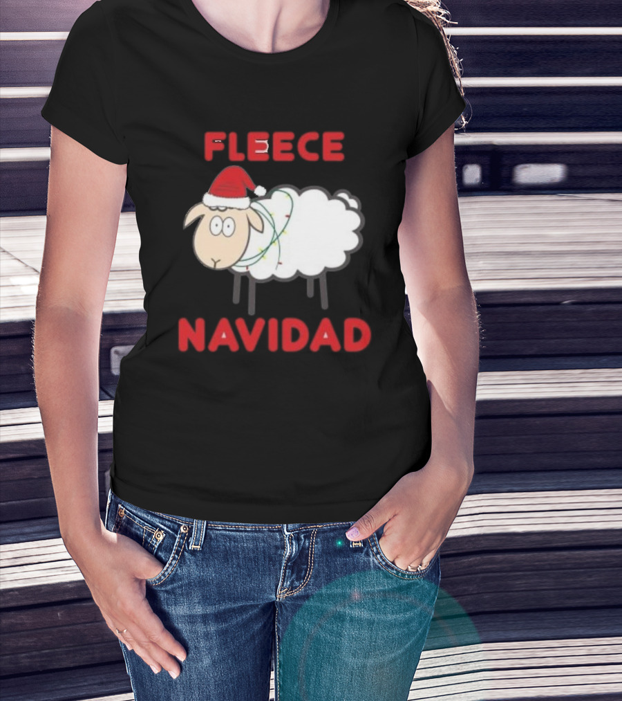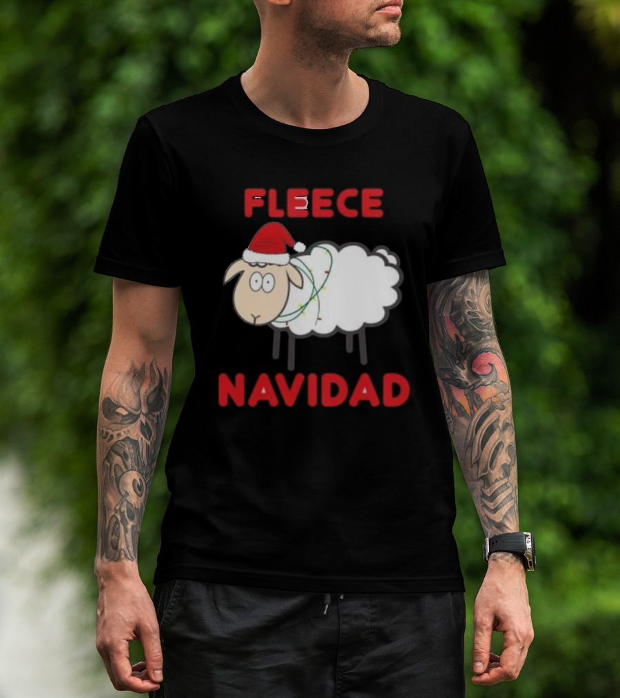 Fleece Navidad Christmas Sheep With Santa Hat And Festive Lights T-Shirt
