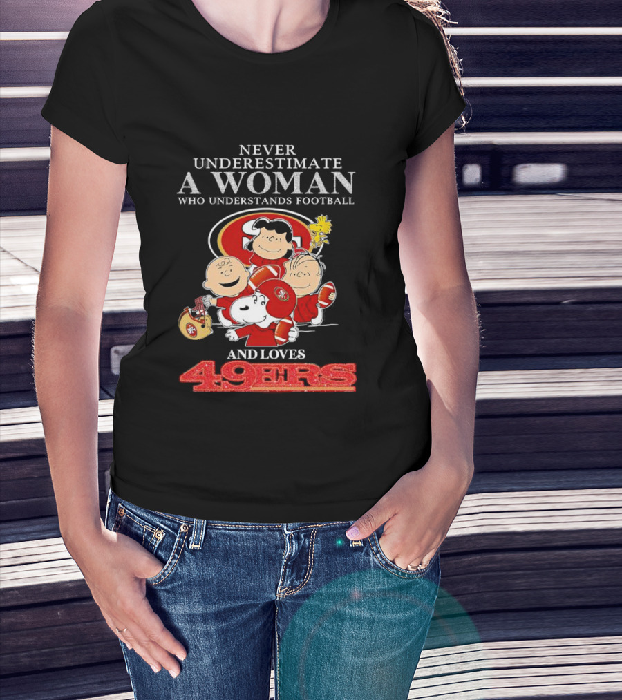 How much will this Never Underestimate a Woman Who Understands Football and Loves 49ers with Peanuts Characters shirt shrink?