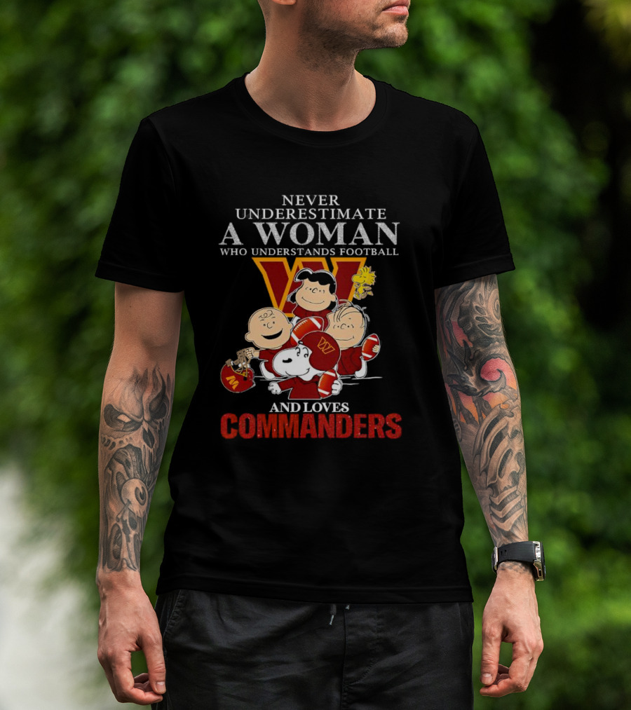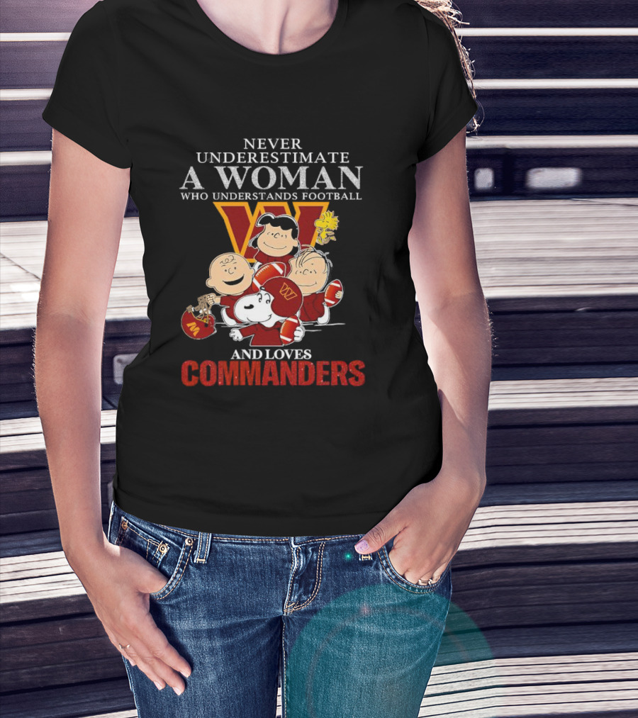 Peanuts Characters Never Underestimate A Woman Who Understands Football And Loves Commanders T-Shirt