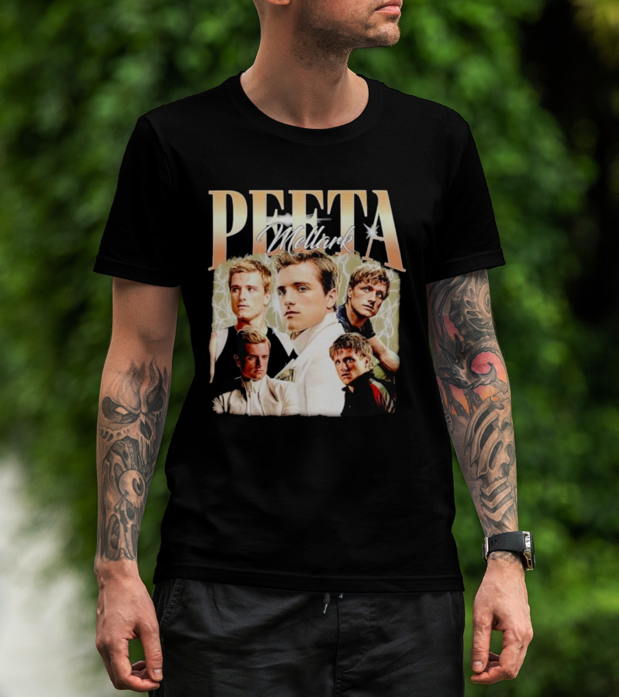 The Peeta Mellark Actor Vintage Style Collage T-shirt is designed for everyday wear and a consistent fit. Fabric is pre-shrunk ring-spun cotton with durable stitching. See the size chart below for exact measurements.